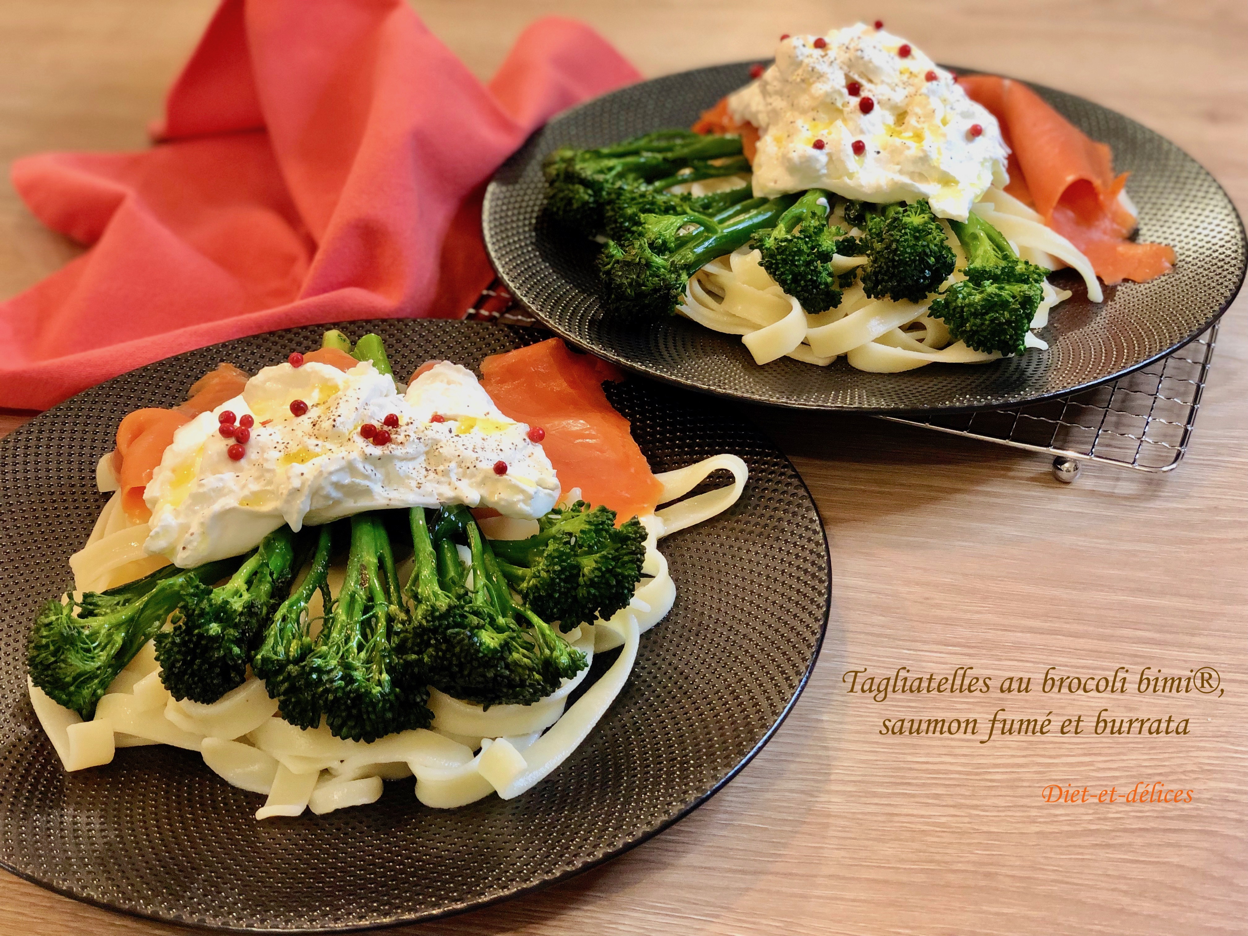 Tagliatelles au brocoli bimi®, saumon fumé et burrata