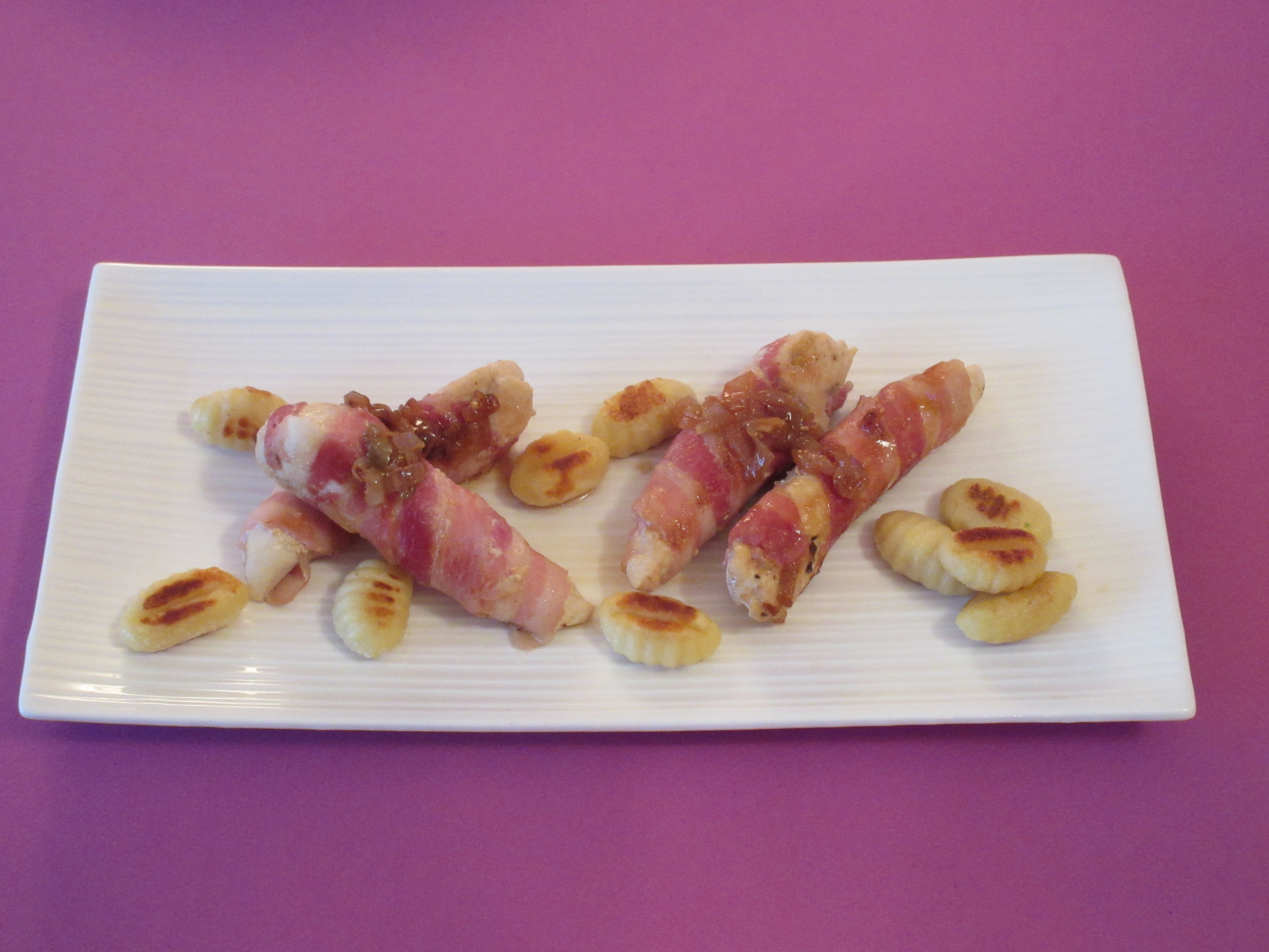 aiguillettes de poulet,poulet, volaille, aiguillettes de poulet bardées, lard, poulet au lard, volaille lardée, viande,viande blanche