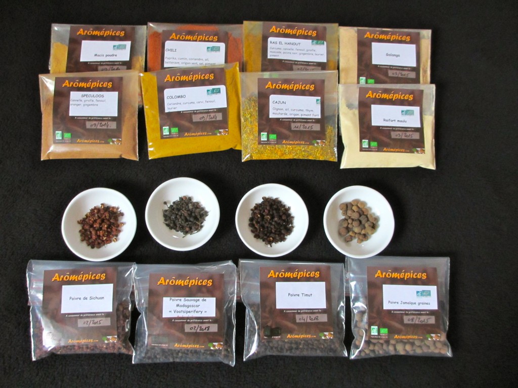 Arômépices vous propose notamment toute une gamme de poivres : poivre Timut, poivre de Jamaïque, poivre de Sichuan…