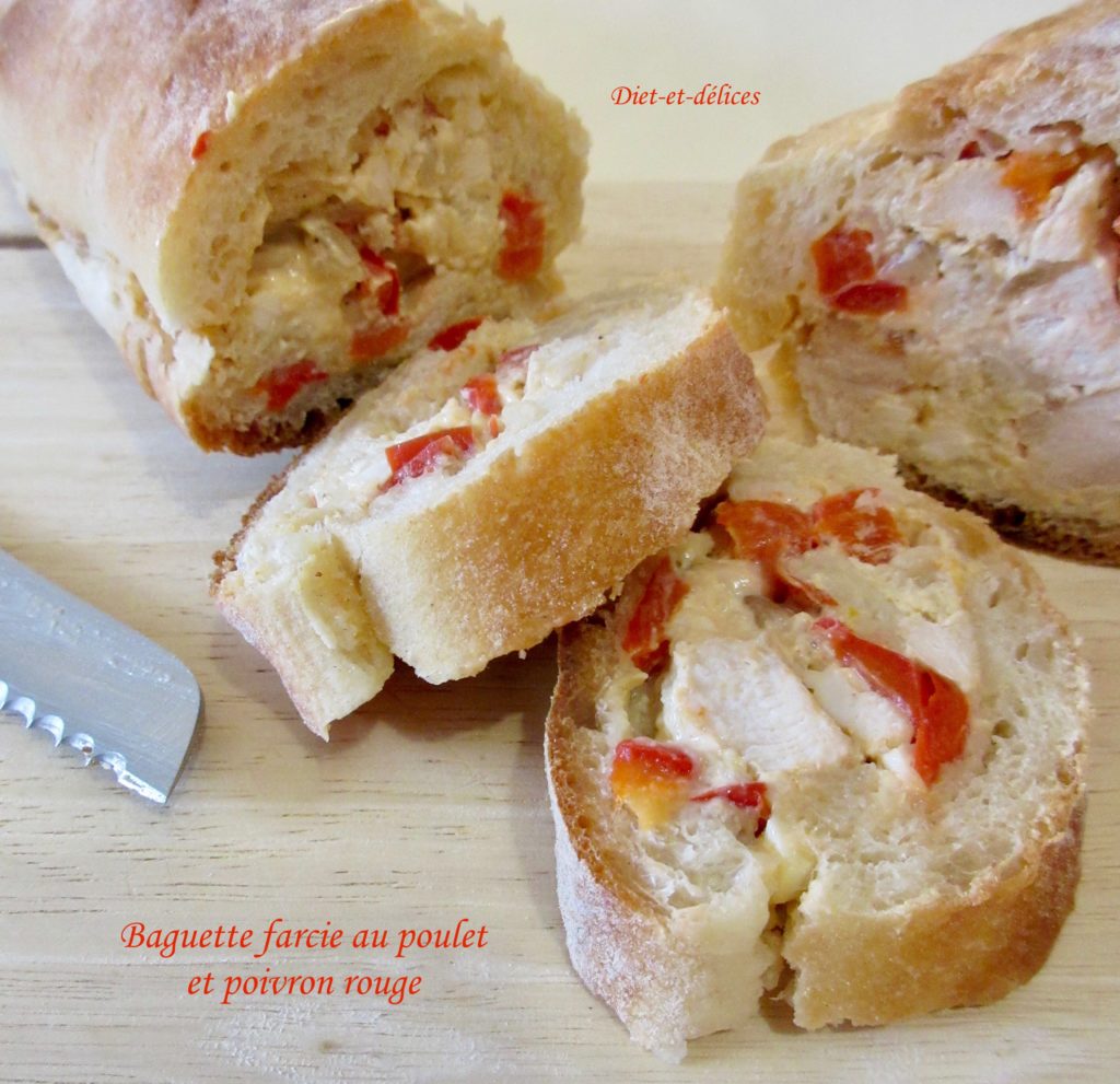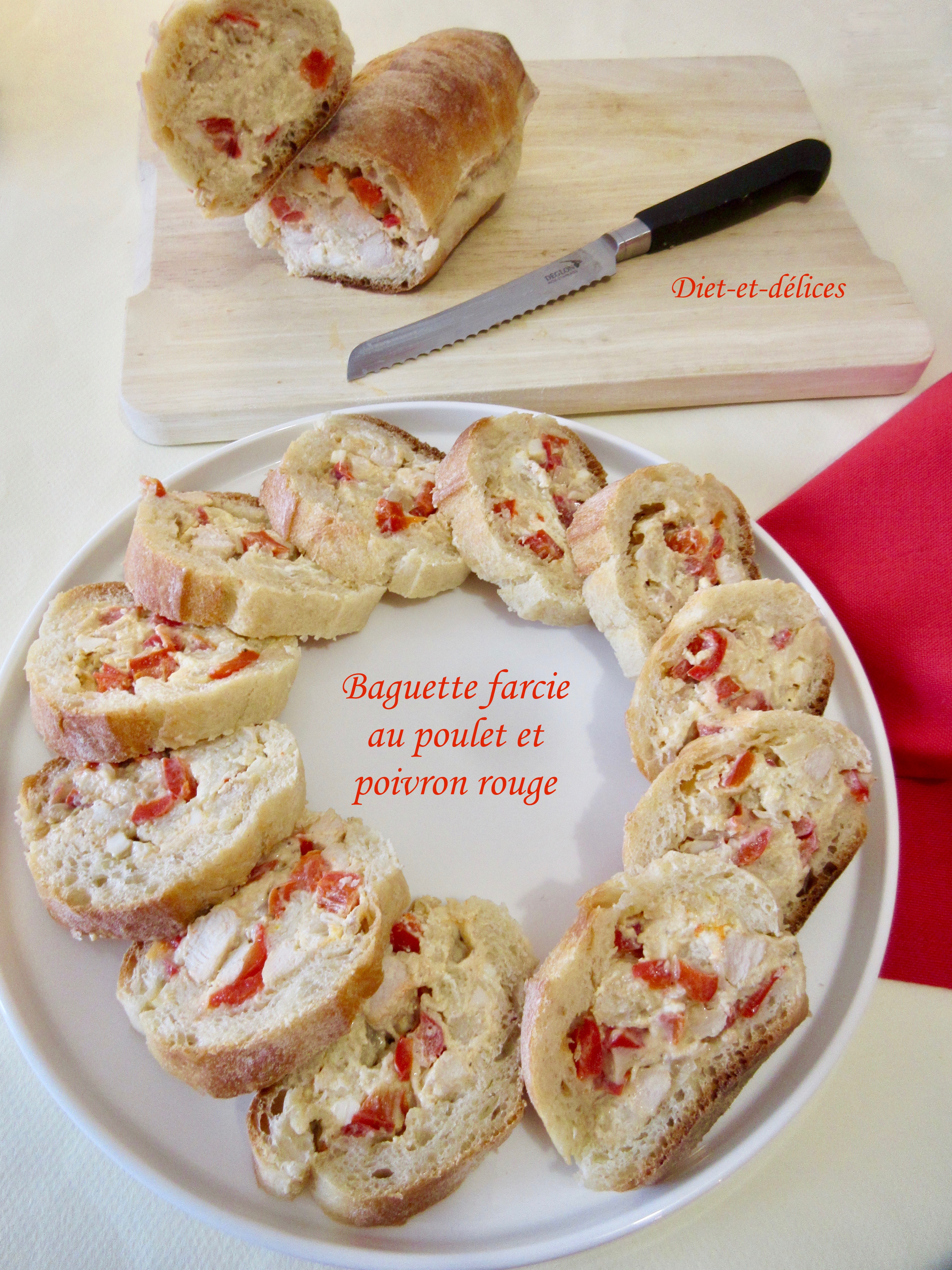 apéro, apéritif, baguette farcie, poulet, poivron , poivron rouge, fromage frais, mozzarella, paprika fumé