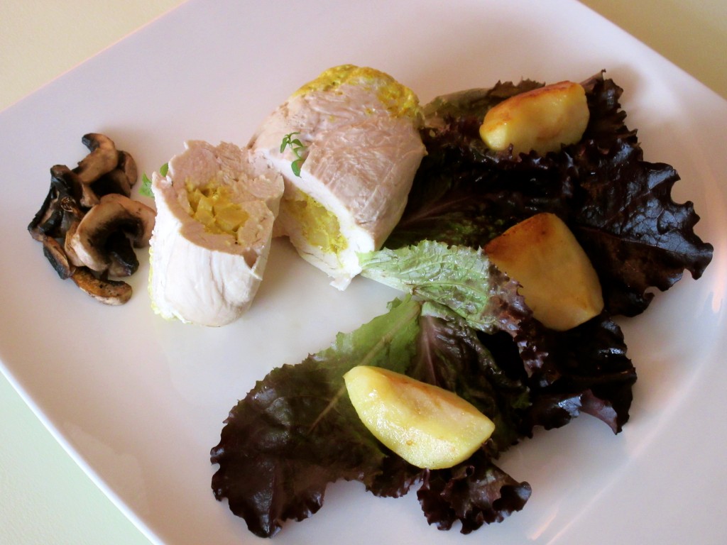 poulet, filet de poulet,poulet farci, ballottines, ballotins,ballotins de poulet, viande, viande blanche, sucré salé, pommes, curry,fromage blanc, farce, farce aux pommes, farce sucrée salée