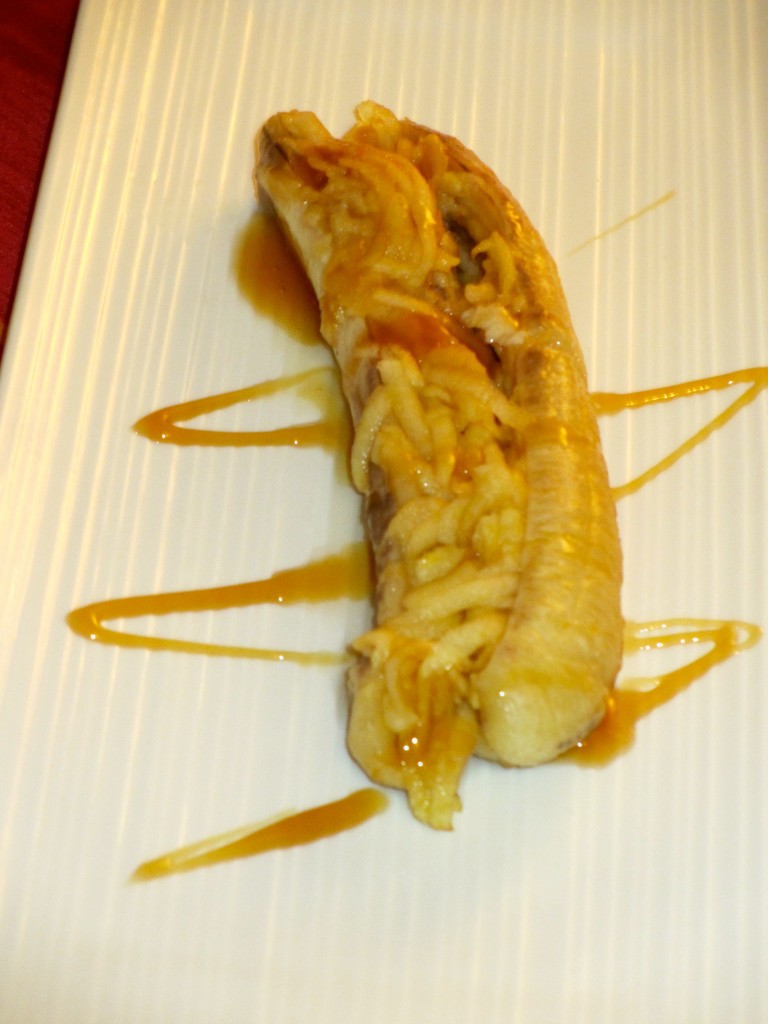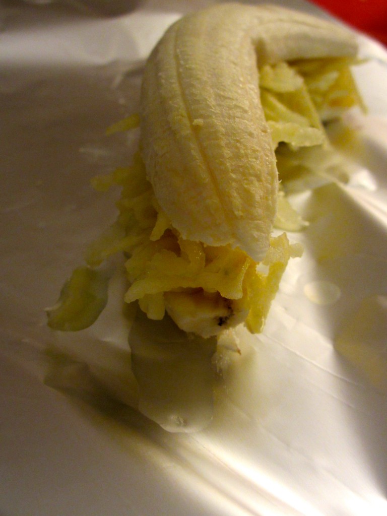 - Garnir les bananes de ce râpé de pomme, puis les refermer.