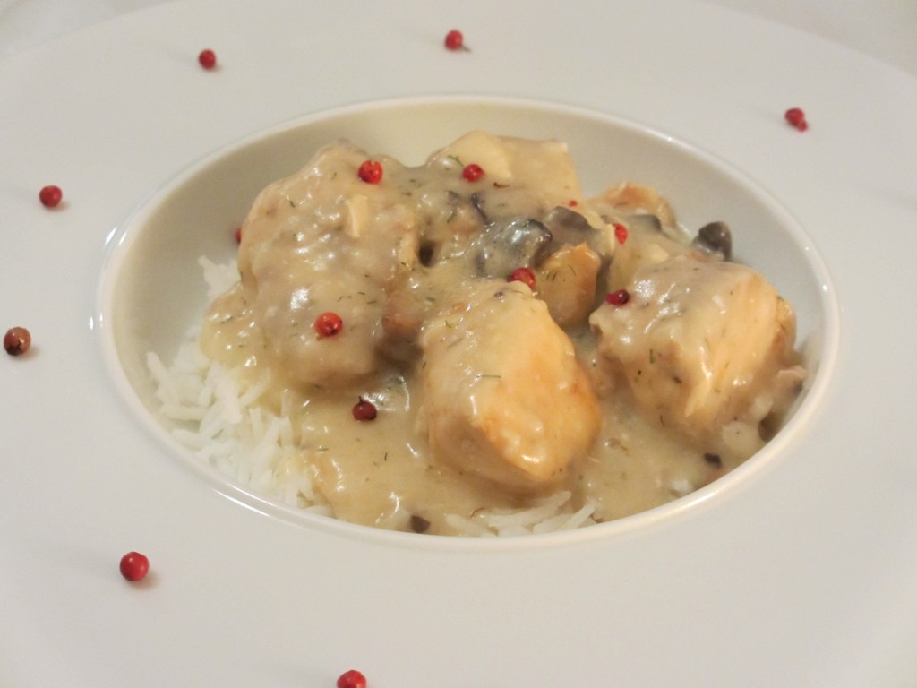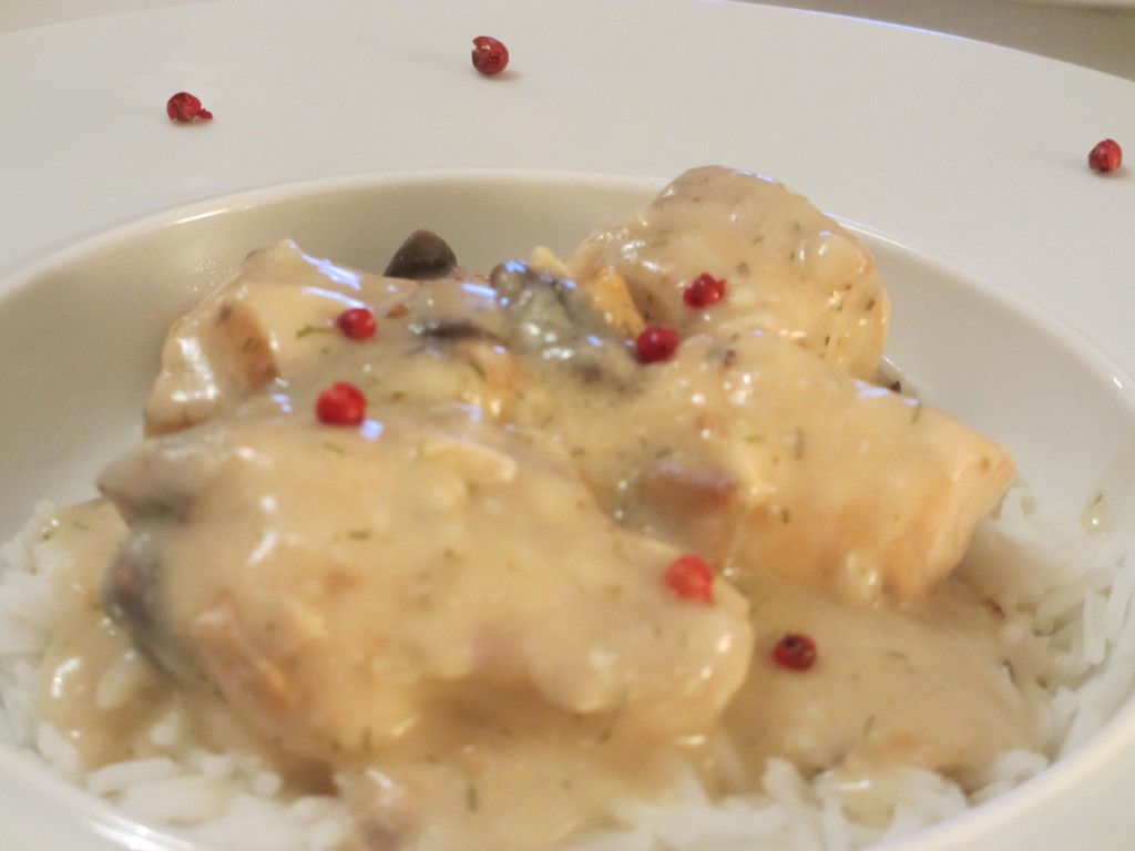 - Verser la sauce et les champignons sur le saumon et laisser mijoter pendant 10 minutes.