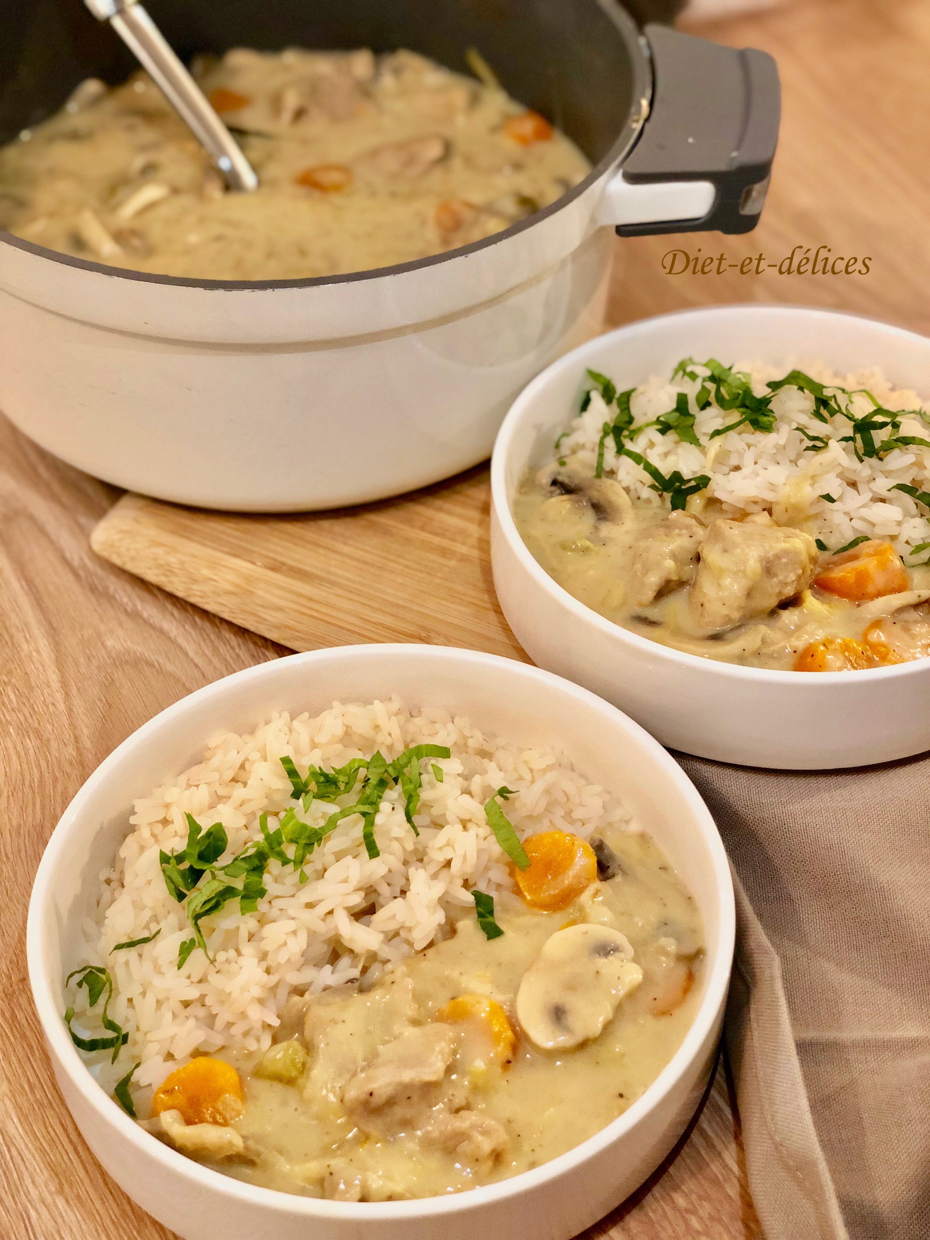 - – blanquette de poulet aux ravioles aux cèpes et petits légumes