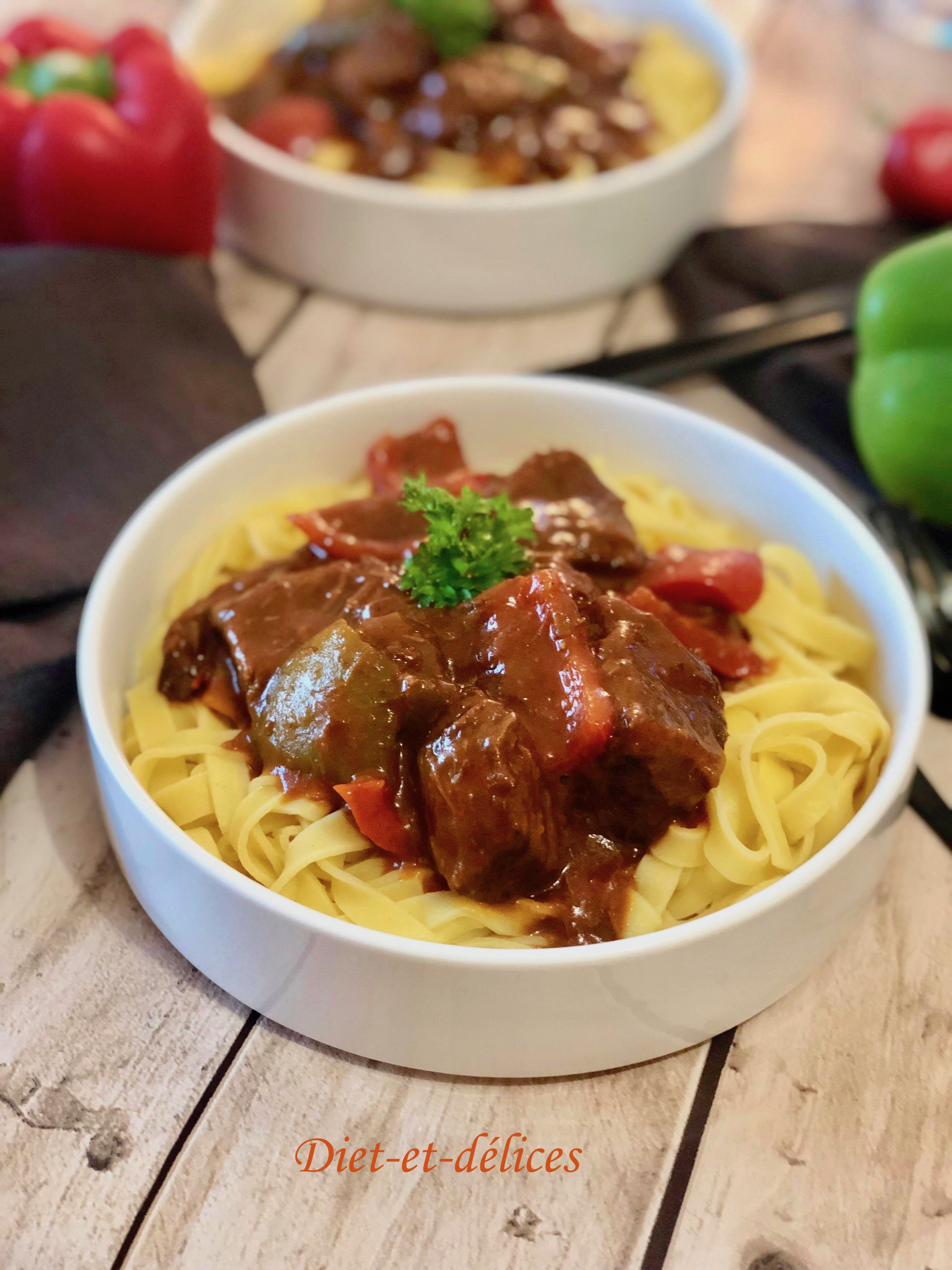 boeuf, boeuf mijoté, boeuf bourguignon, poivron, concentré de tomates, tomate