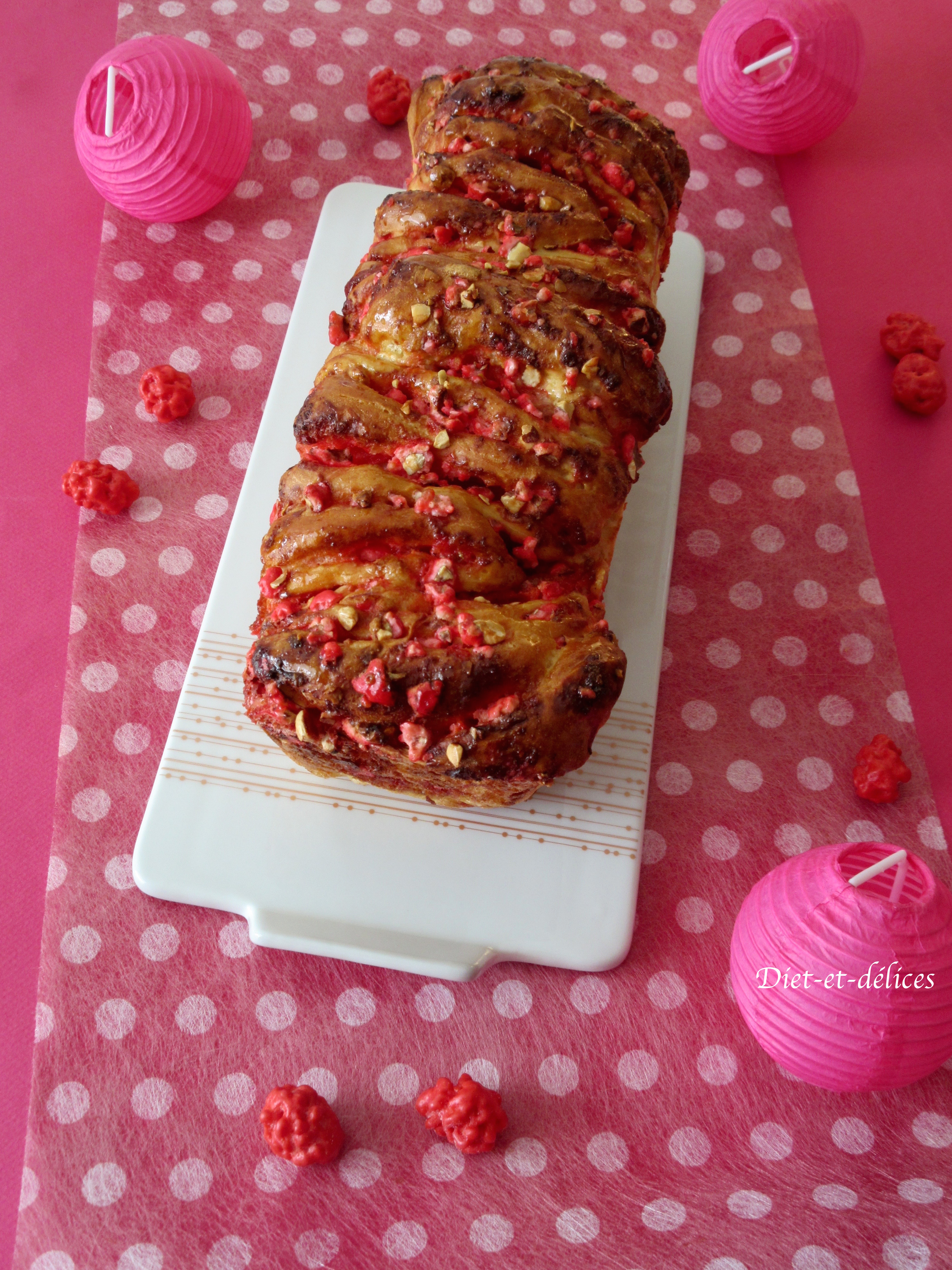 Accueil » Recettes » Desserts » Brioche à effeuiller aux pralines roses