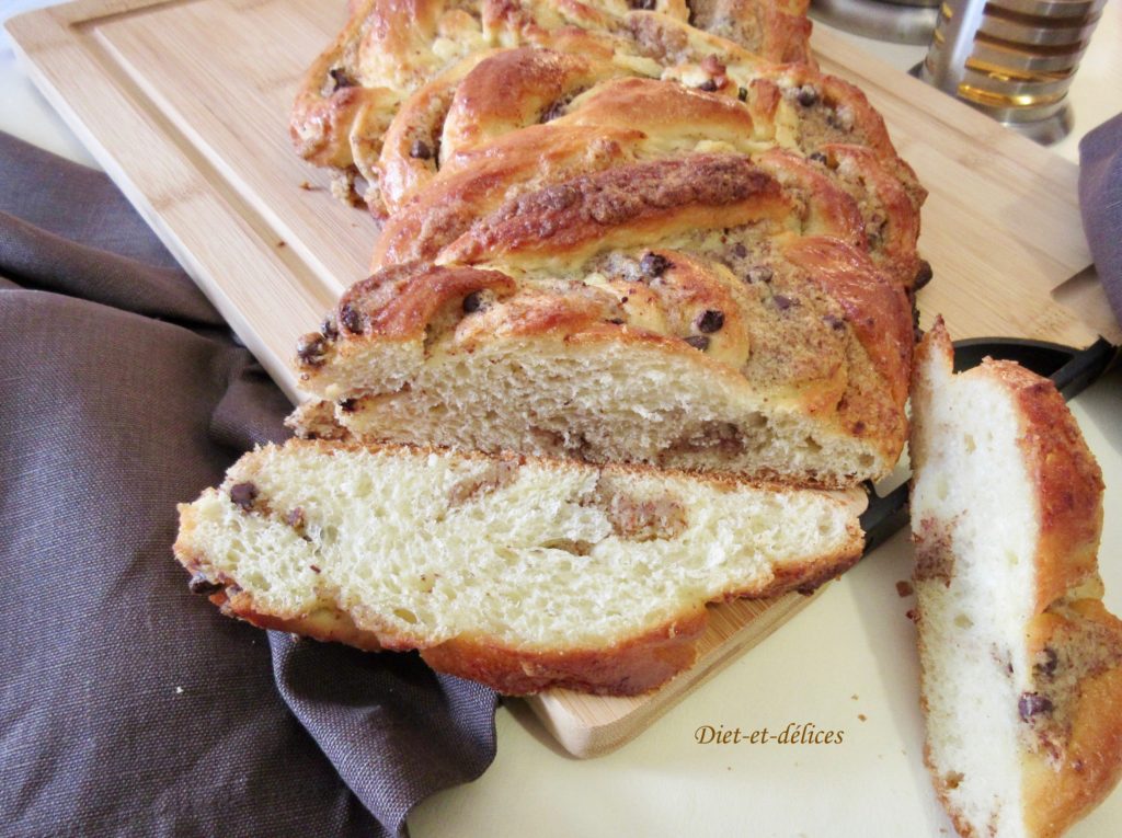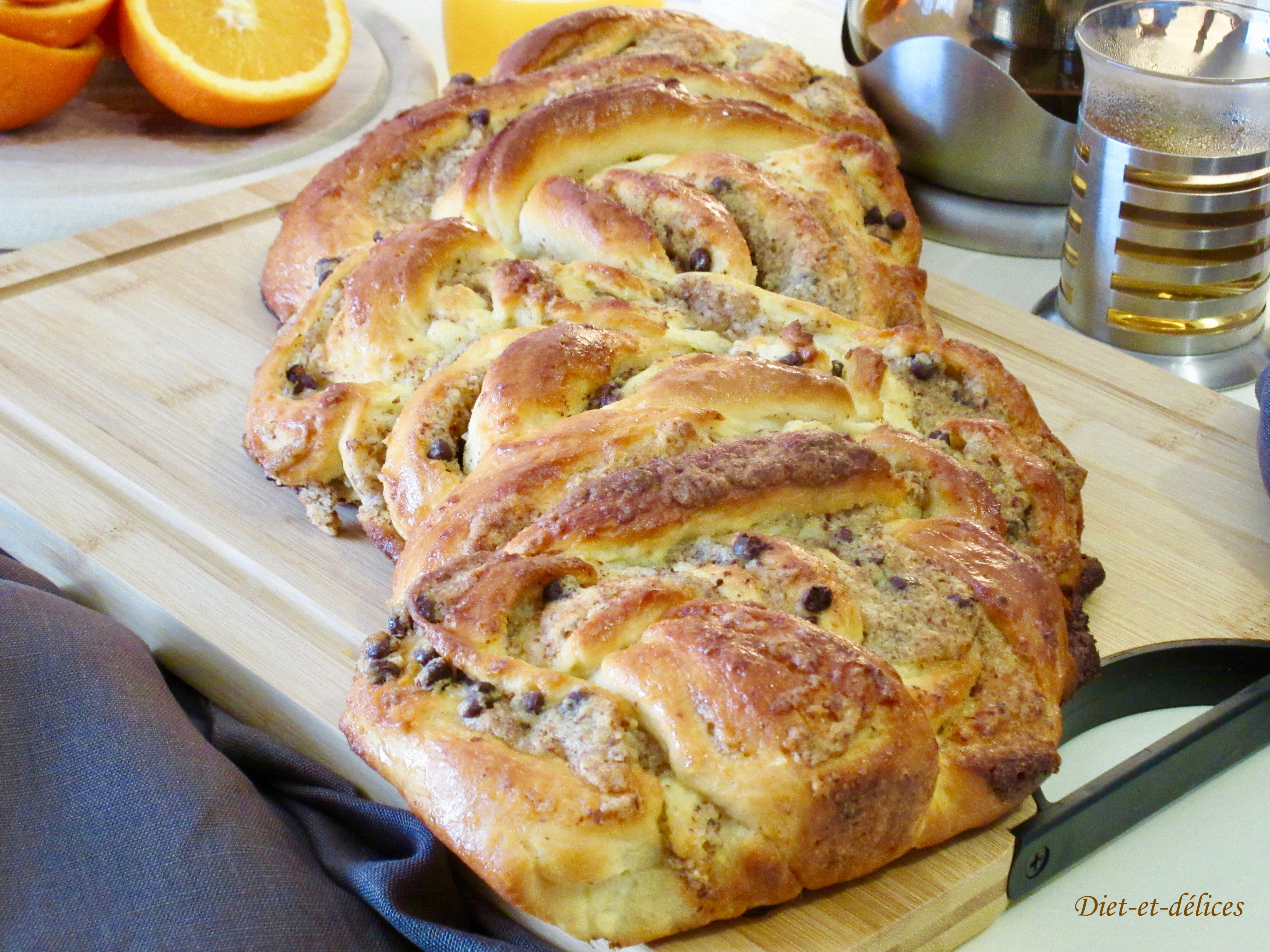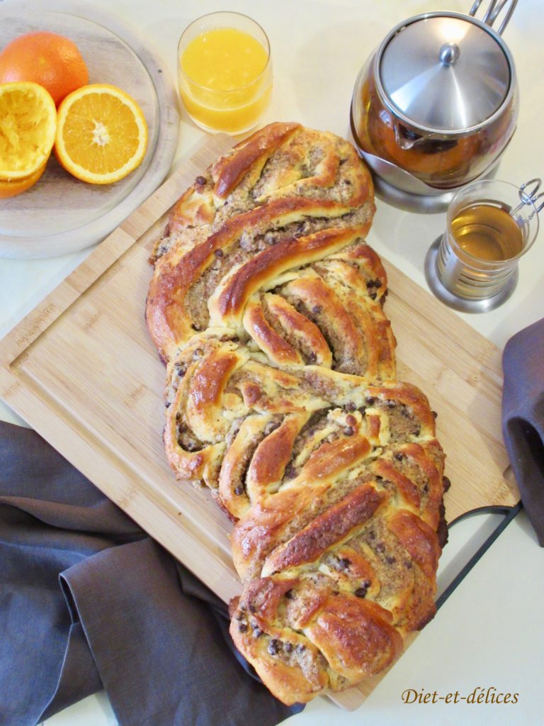 brioche, brioche tressée, crème d’amandes, petit déjeuner, pépites de chocolat