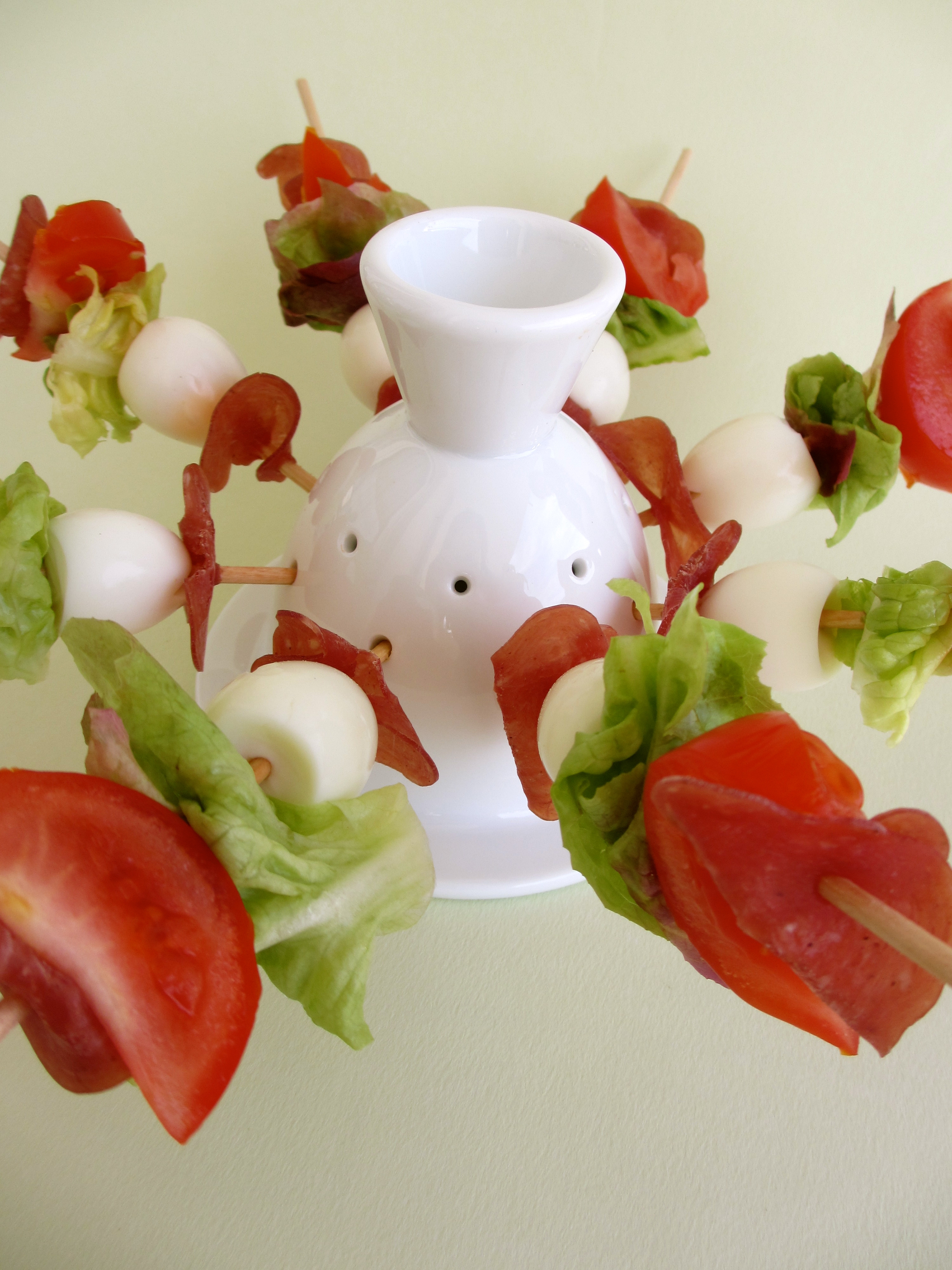 Bien sympathique ces brochettes apéritives. Et beau présentoir.