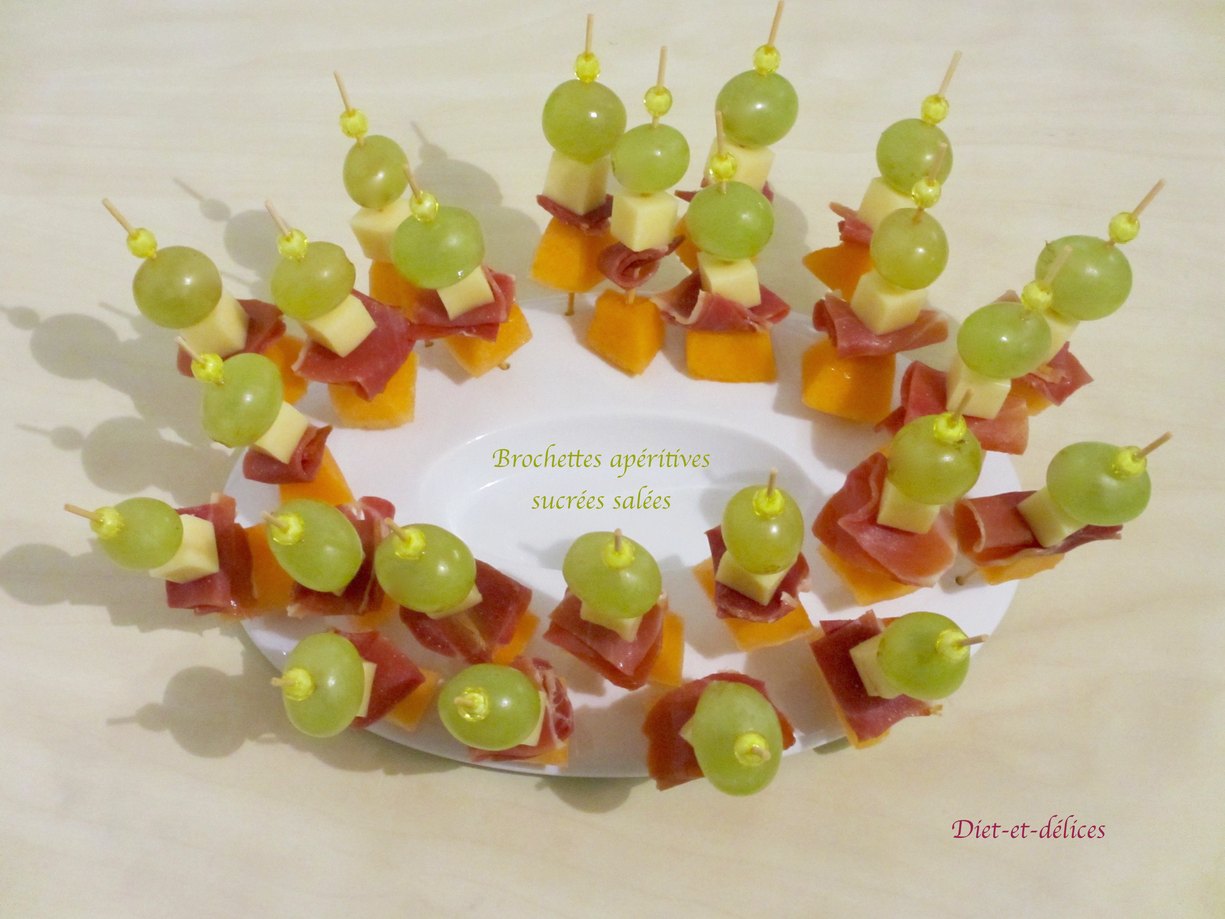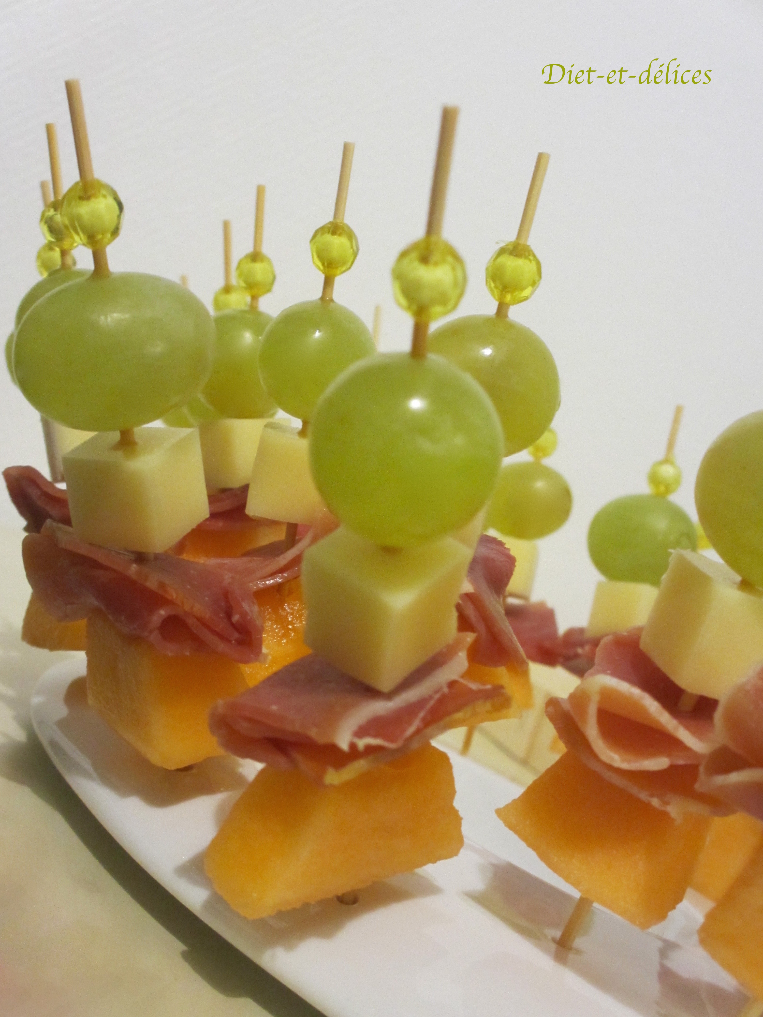brochettes, apéritif, apéro, brochettes apéritives, raisin, comté, sucré salé, jambon cru, melon