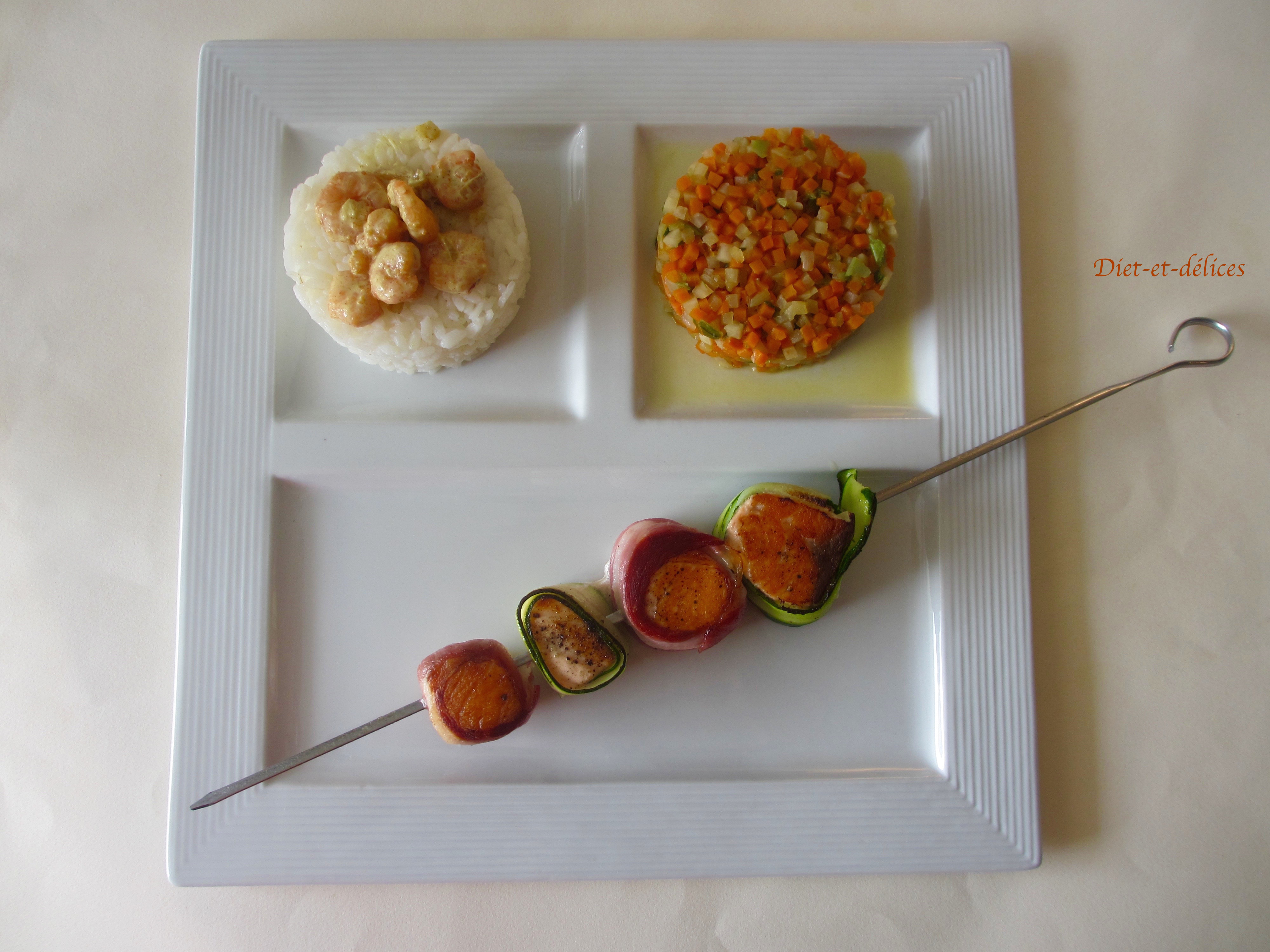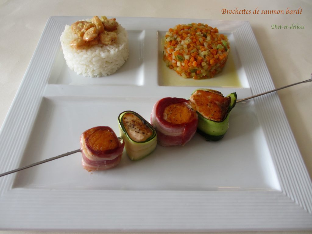 courgette, lard, saumon, brochettes, saumon lardé, poisson, brochettes de saumon, brochettes de saumon, diététique