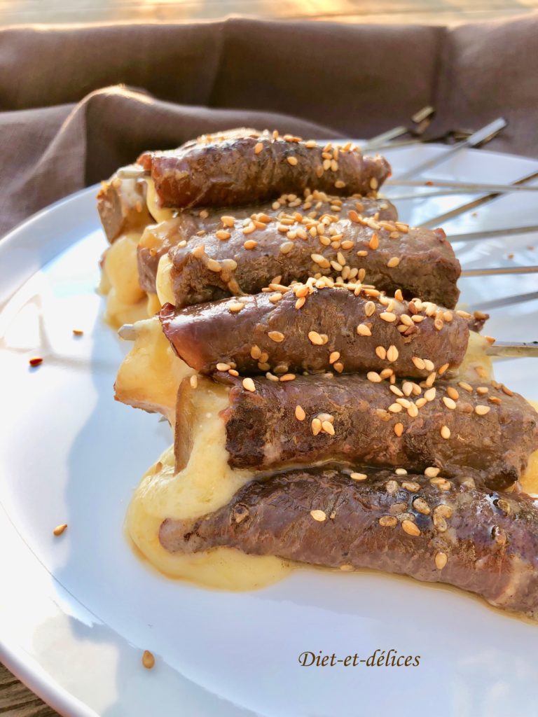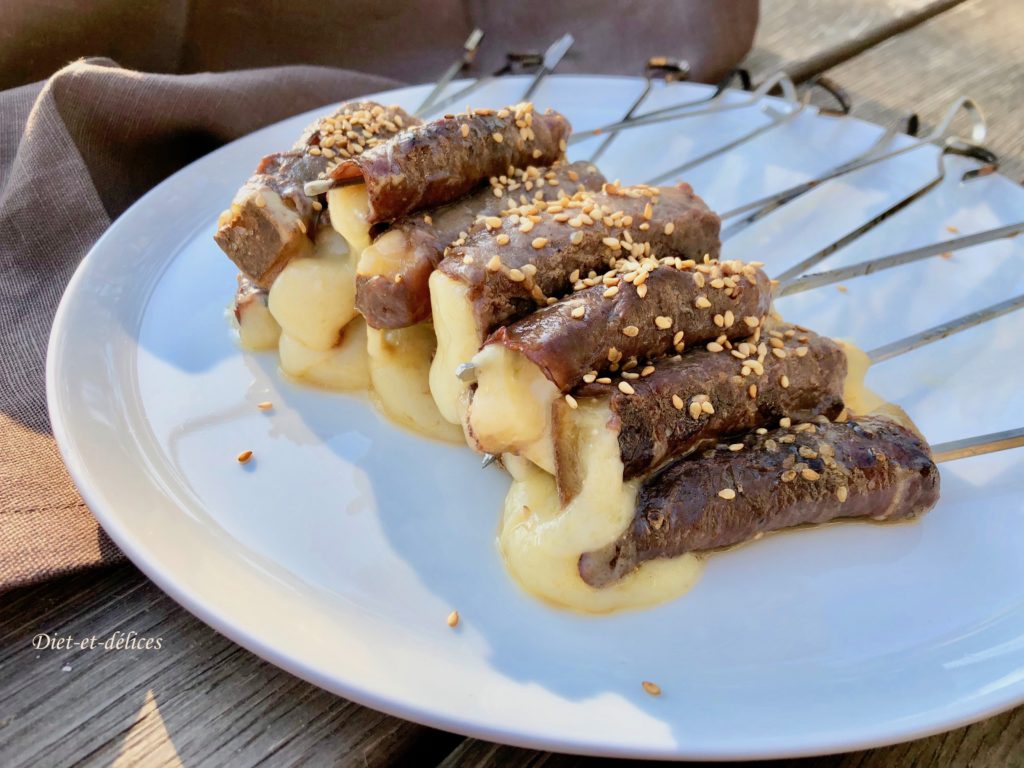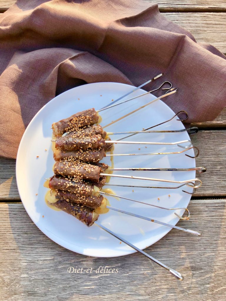brochettes, yakitori, carpaccio, comté, apéro, apéritif, boeuf, sauce soja, sésame