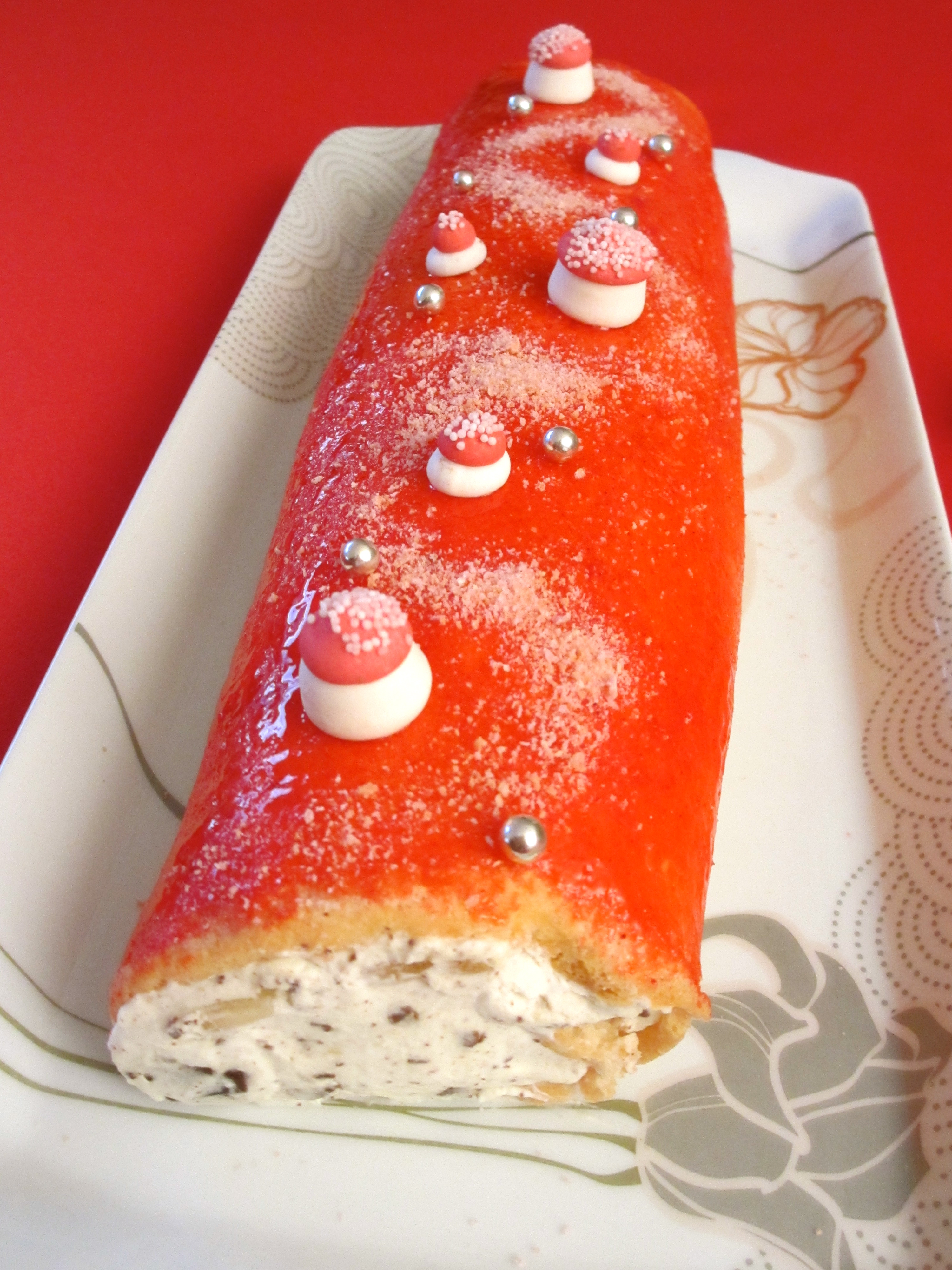 bûche, bûche de Noël,Noël, bûche à la poire,bûche aux biscuits roses, biscuits roses, poudre de biscuits roses, dessert, dessert de fêtes, chantilly,mascarpone, eau de vie, eau de vie de poire,fêtes