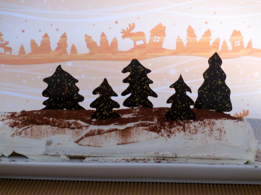 bûche, bûche de noël, noël, dessert,dessert de noël, bûche façon tiramisu, tiramisu, génoise, café, chocolat,génoise au café