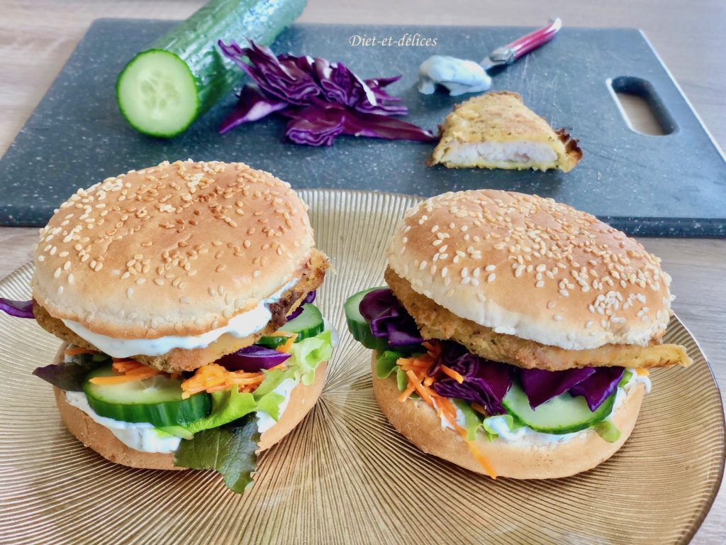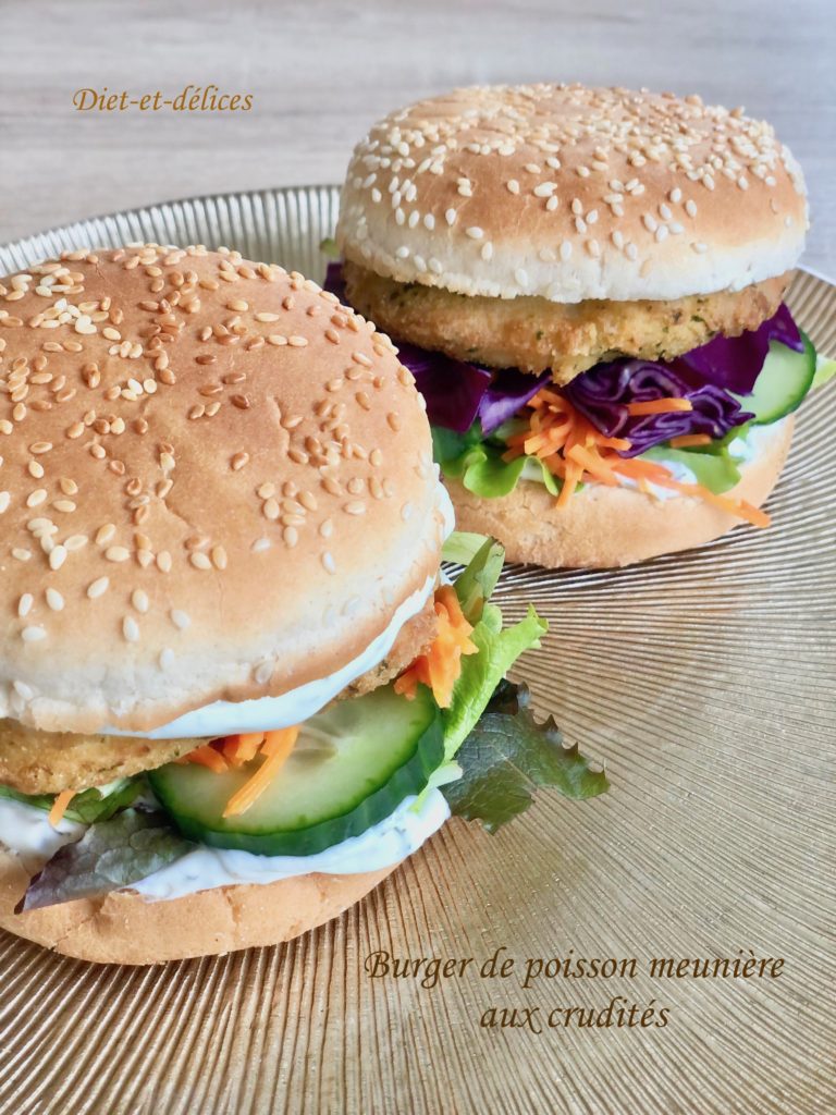 burger, burger de poisson, poisson meunière, burger poisson crudités, chou rouge, concombre, carotte, fromage blanc, aneth
