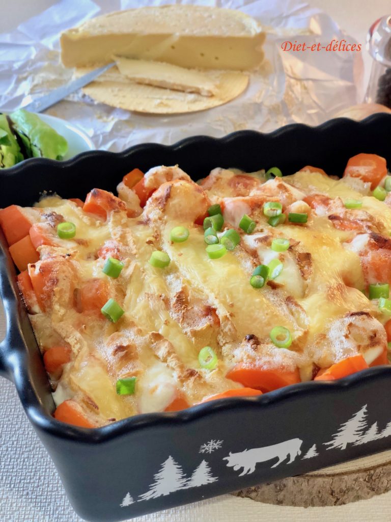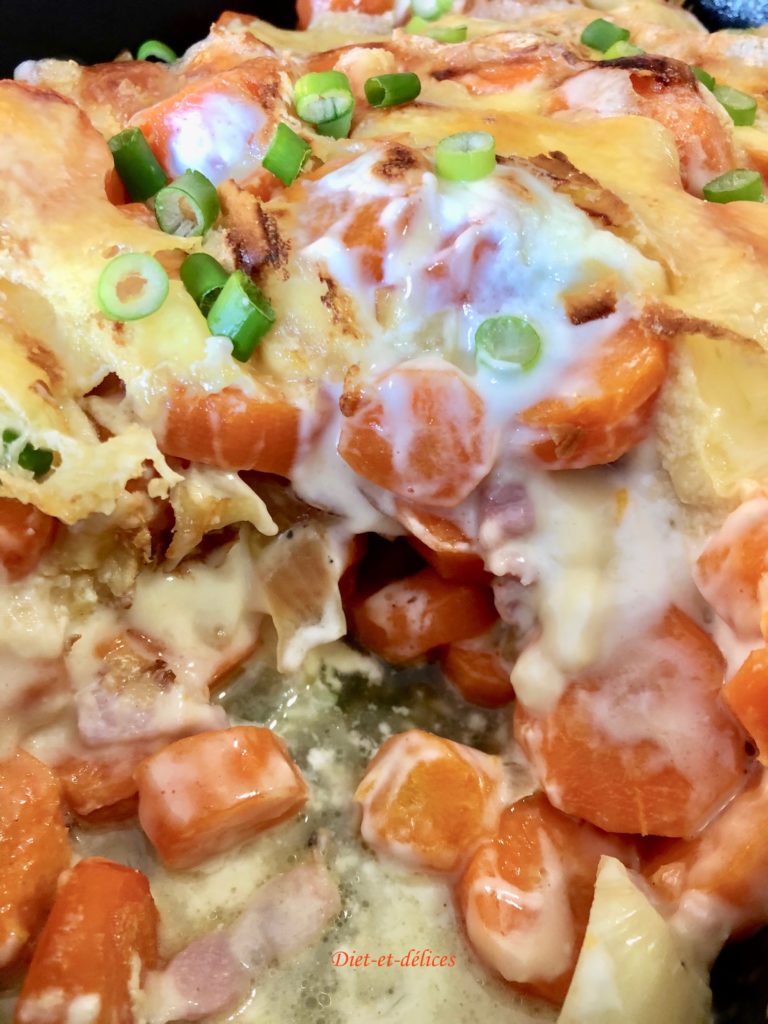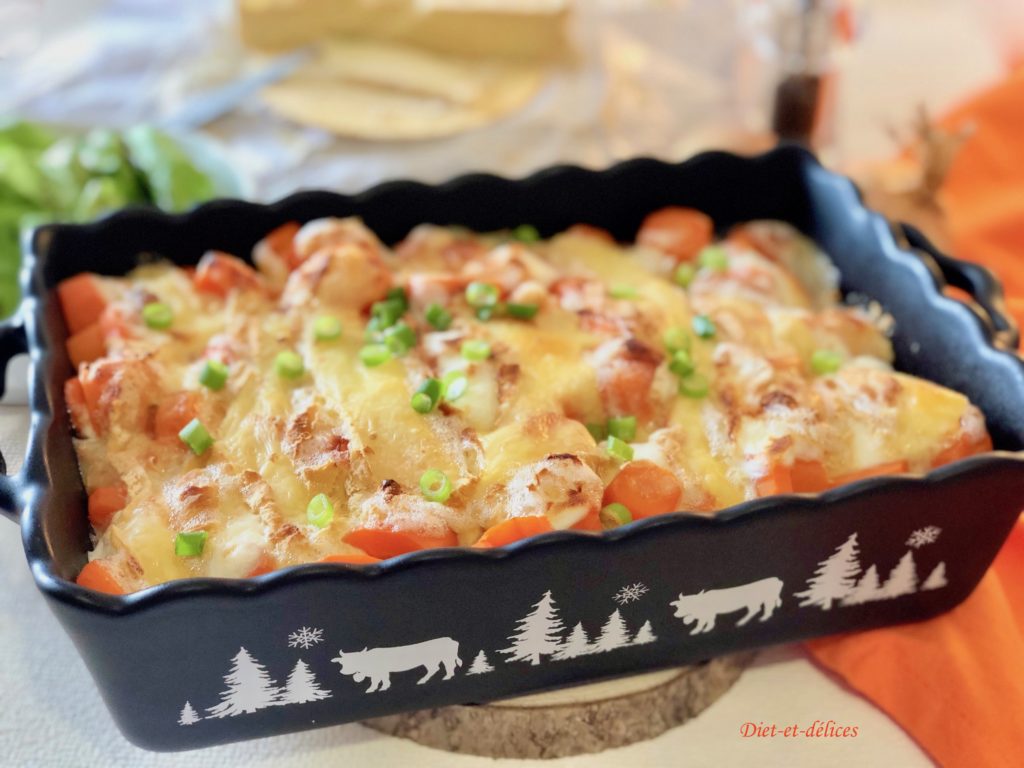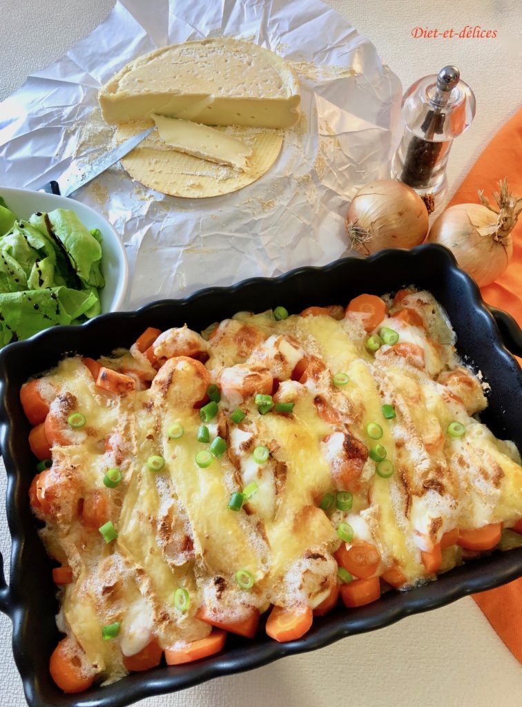 – Cette recette est inspirée de la traditionnelle tartiflette, où les pommes de terre ont été remplacé par des carottes, ce qui en fait un plat plus léger et moins calorique.