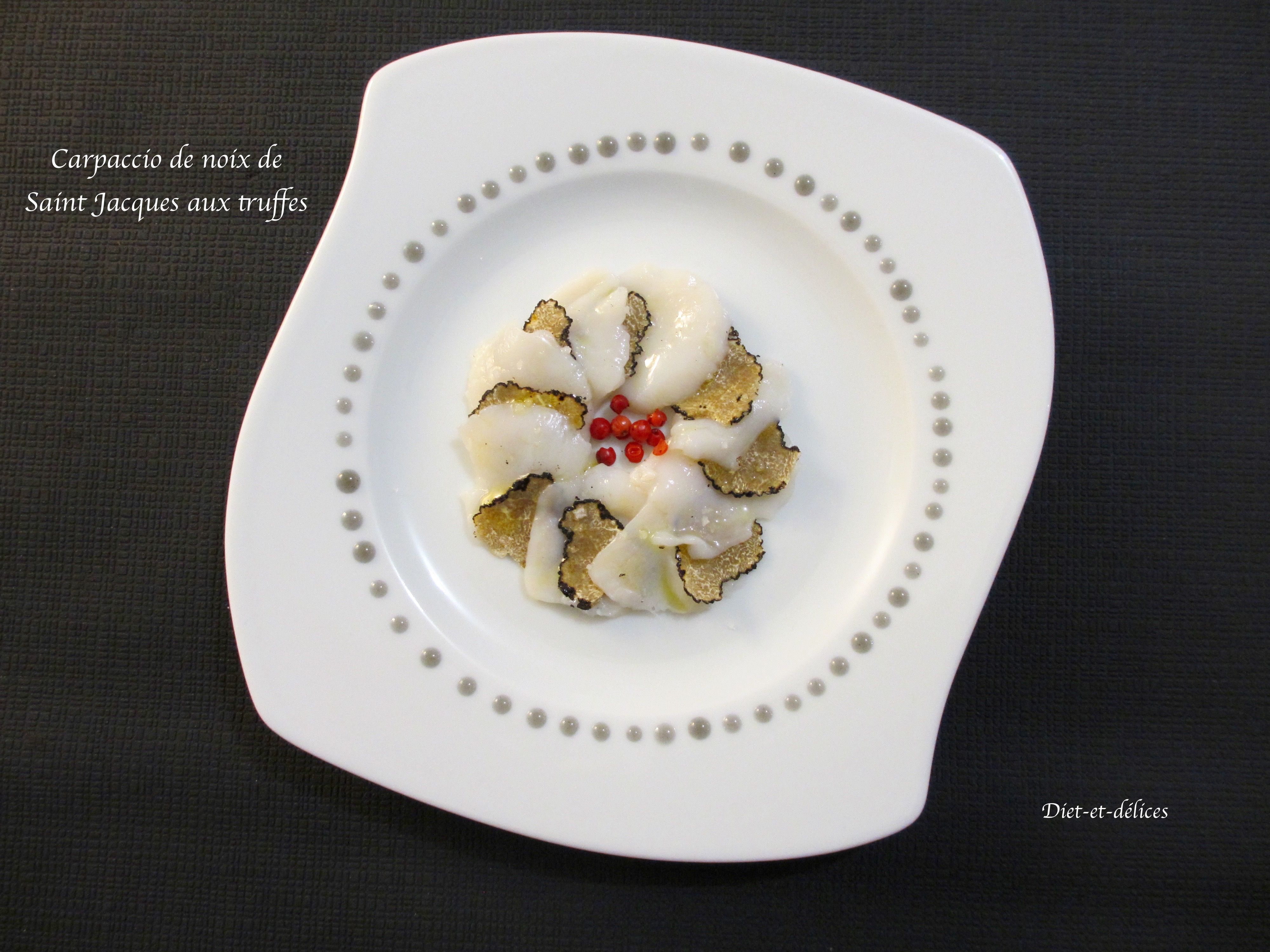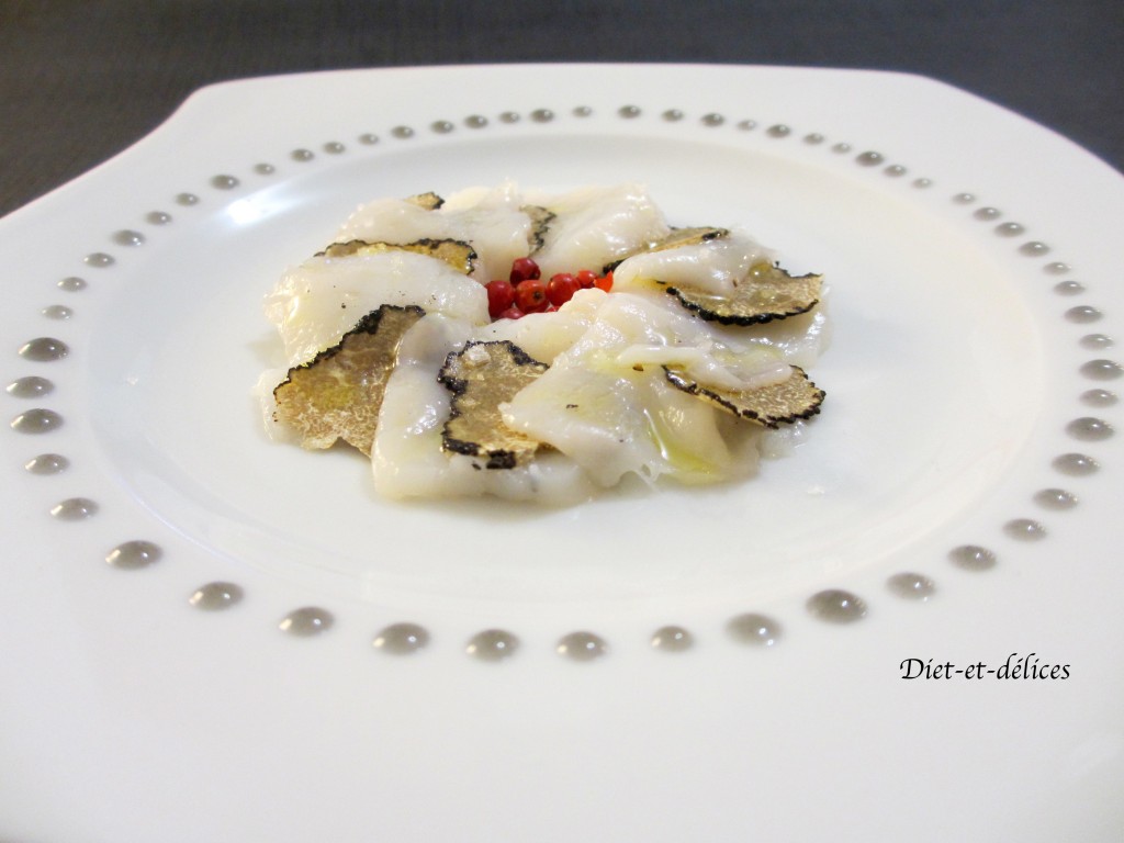 carpaccio, saint jacques, truffes, carpaccio de saint jacques, noix de saint jacques, truffes fraîches, carpaccio de saint jacques aux truffes, entrée, Noël , mollusque, entrée festive, huile d’olive