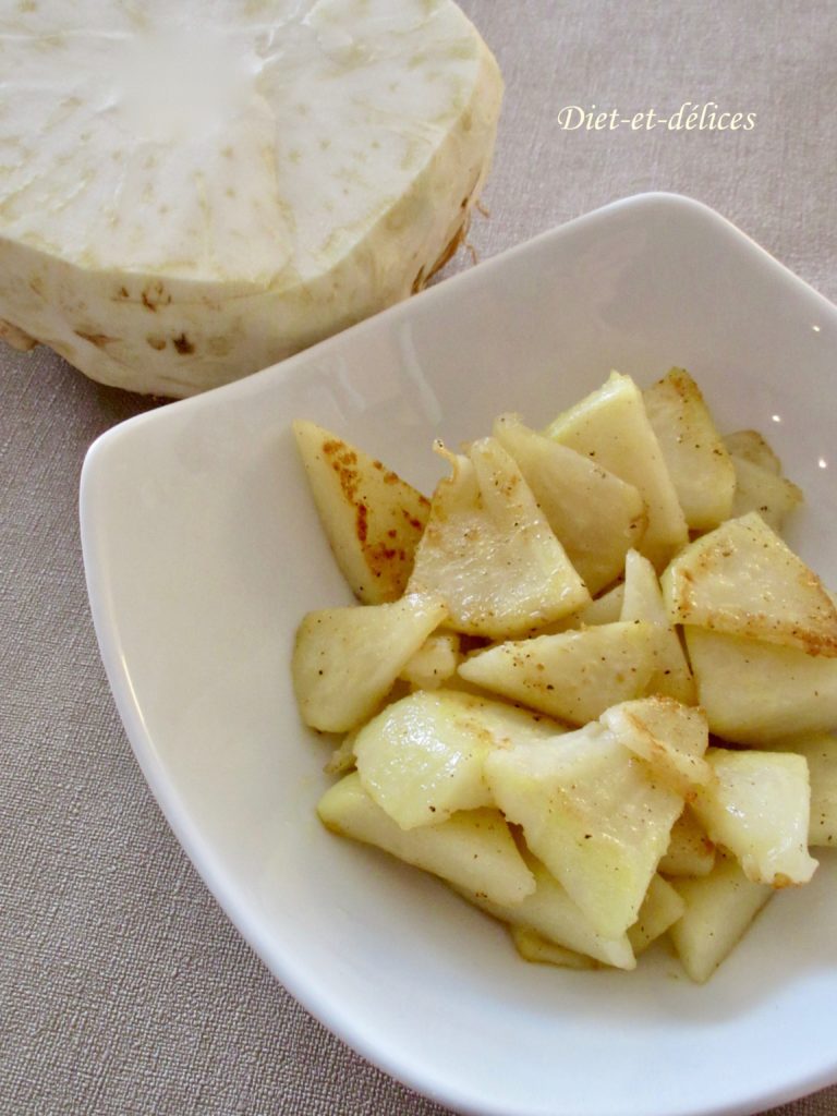 - céleri rave, sauce légère au fromage blanc et à la moutarde