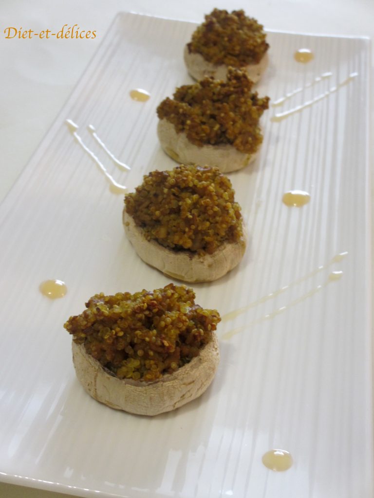 végétarien, quinoa, champignons, légumes farcis, curcuma, champignons farcis, diététique, champignons farcis au quinoa