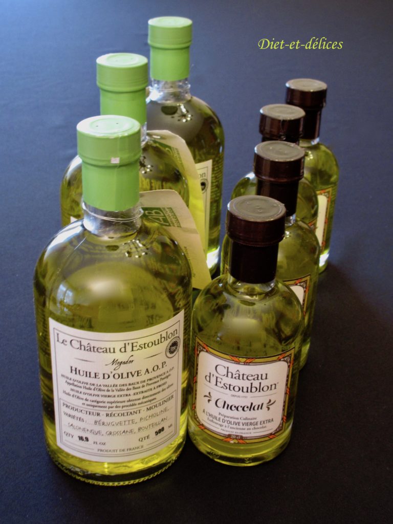 - De l’huile d’olive aromatisée au chocolat. Cette huile est réalisée à l’aide d’une méthode ancestrale : l’enfleurage. Cette méthode consiste à faire absorber à l’huile d’olive des molécules aromatiques de fruits ou de plantes fraîches, par décoction, afin d’obtenir une aromatisation naturelle, puissante et authentique. Ici, du grué de cacao est utilisé pour parfumer l’huile.