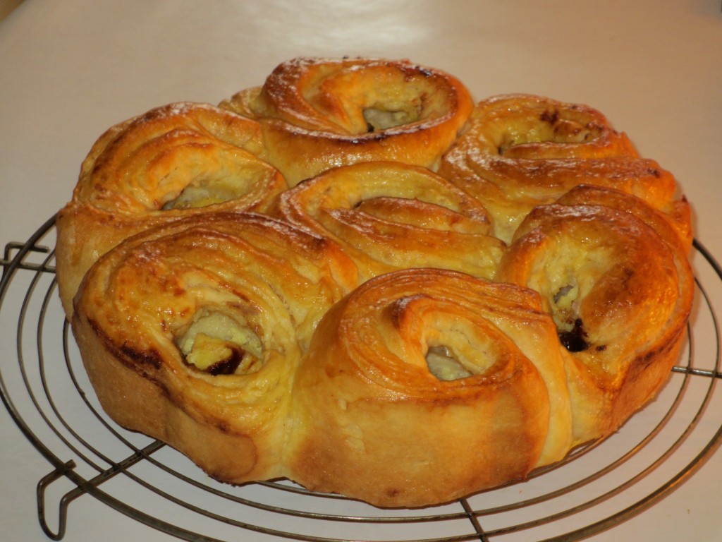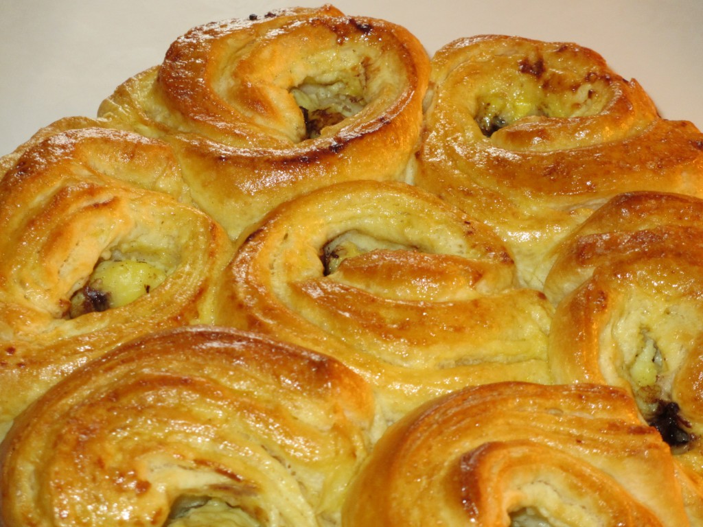 chinois, viennoiserie, chinois à la crème pâtissière, crème pâtissière, pépites de chocolat, boulange, Schneckenkuchen, gâteau en escargot, brioche fourrée