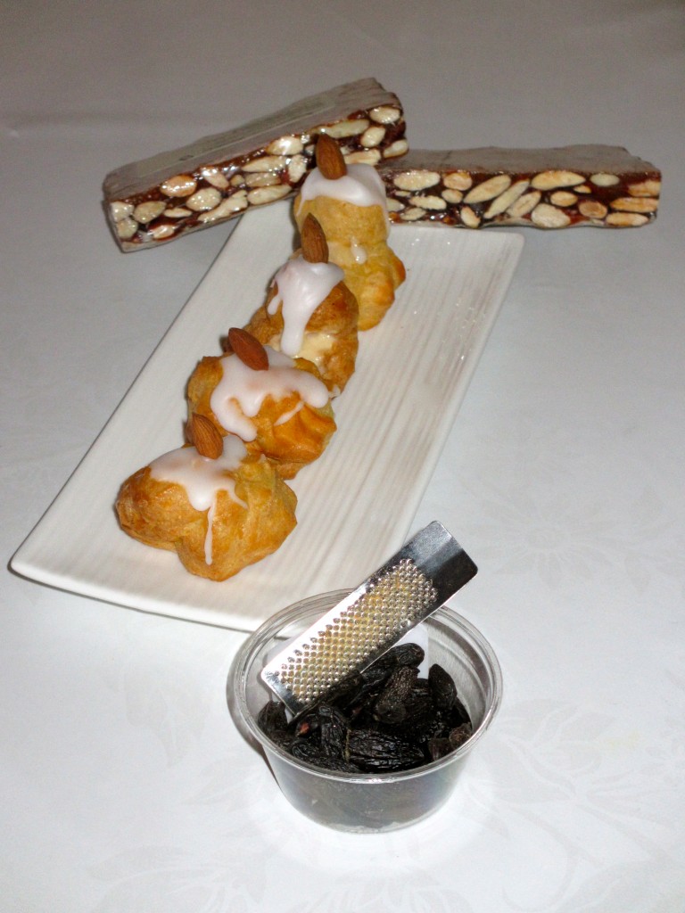 choux, choux à la crème, choux au nougat, nougat, nougat noir, fève de tonka, dessert, pâte à choux, amandes,glaçage choux