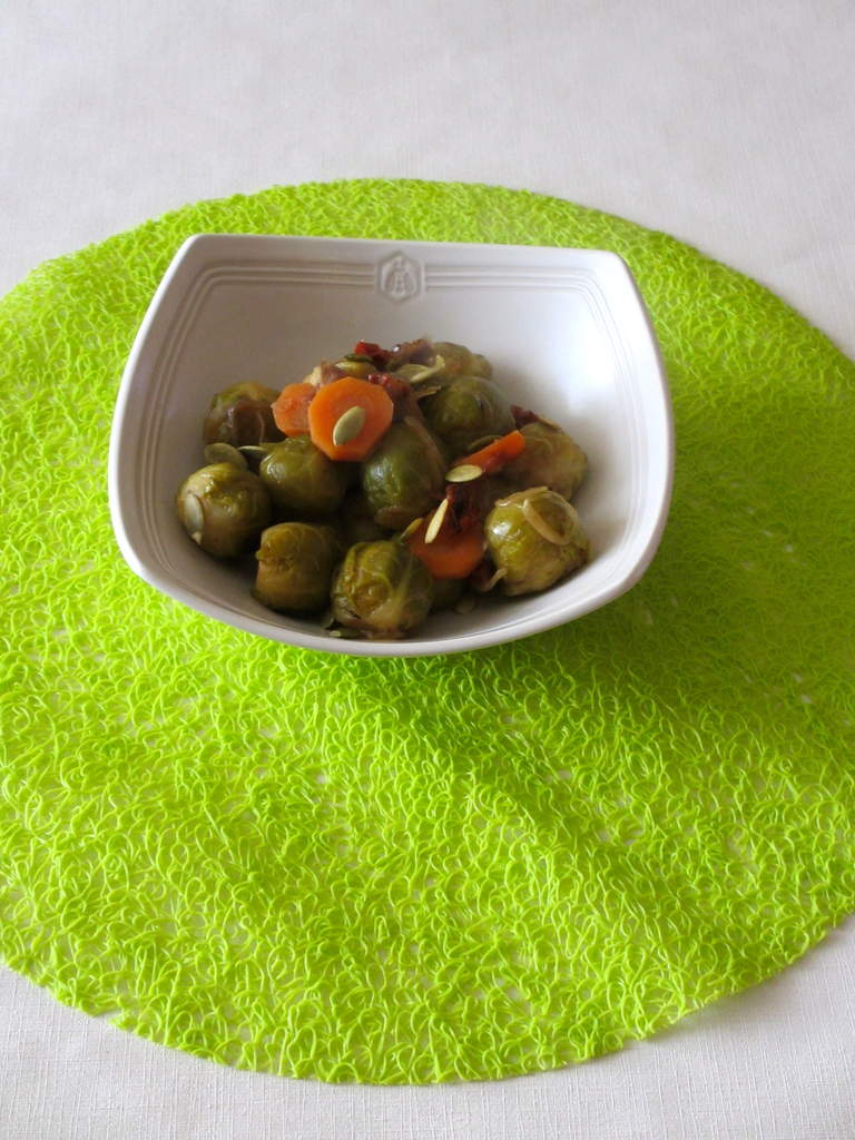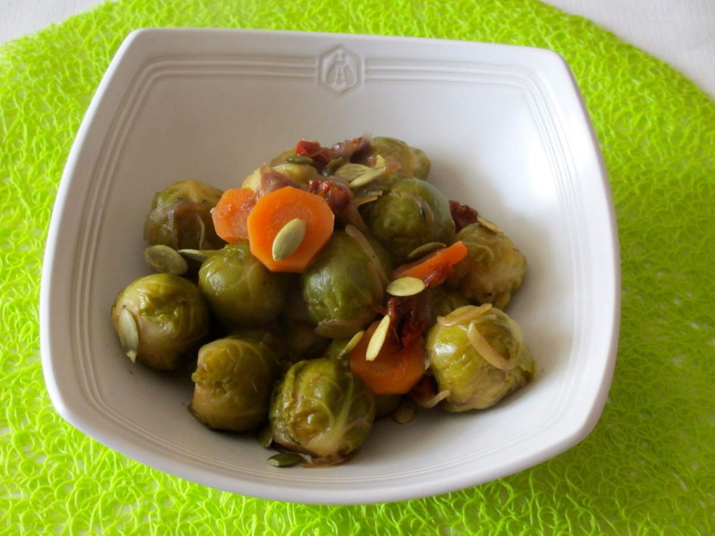 choux de Bruxelles, chou, choux de Bruxelles braisés, carottes, tomates séchées, légumes ,graines de courges, accompagnement, diététique