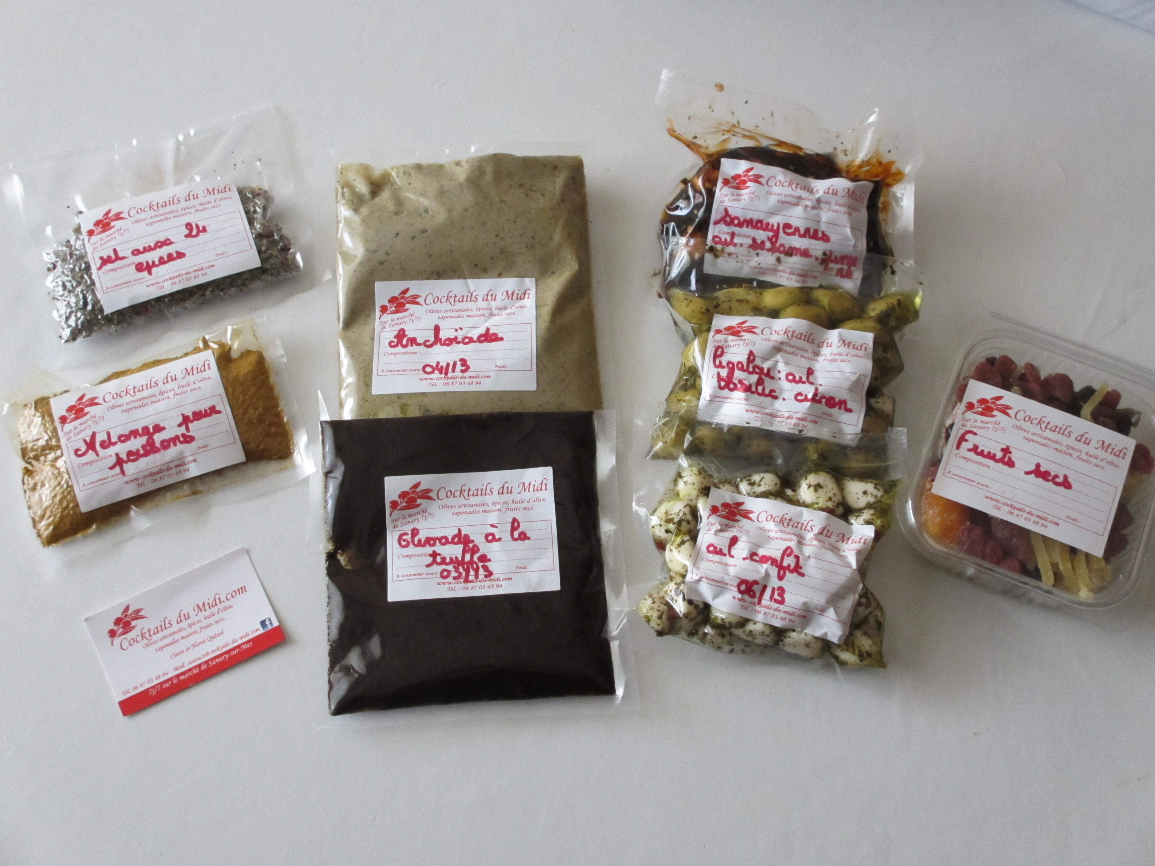 Sur cocktails du midi vous retrouverez également toute une gamme d’épices, de fruits secs, d’huile d’olive et de sel.