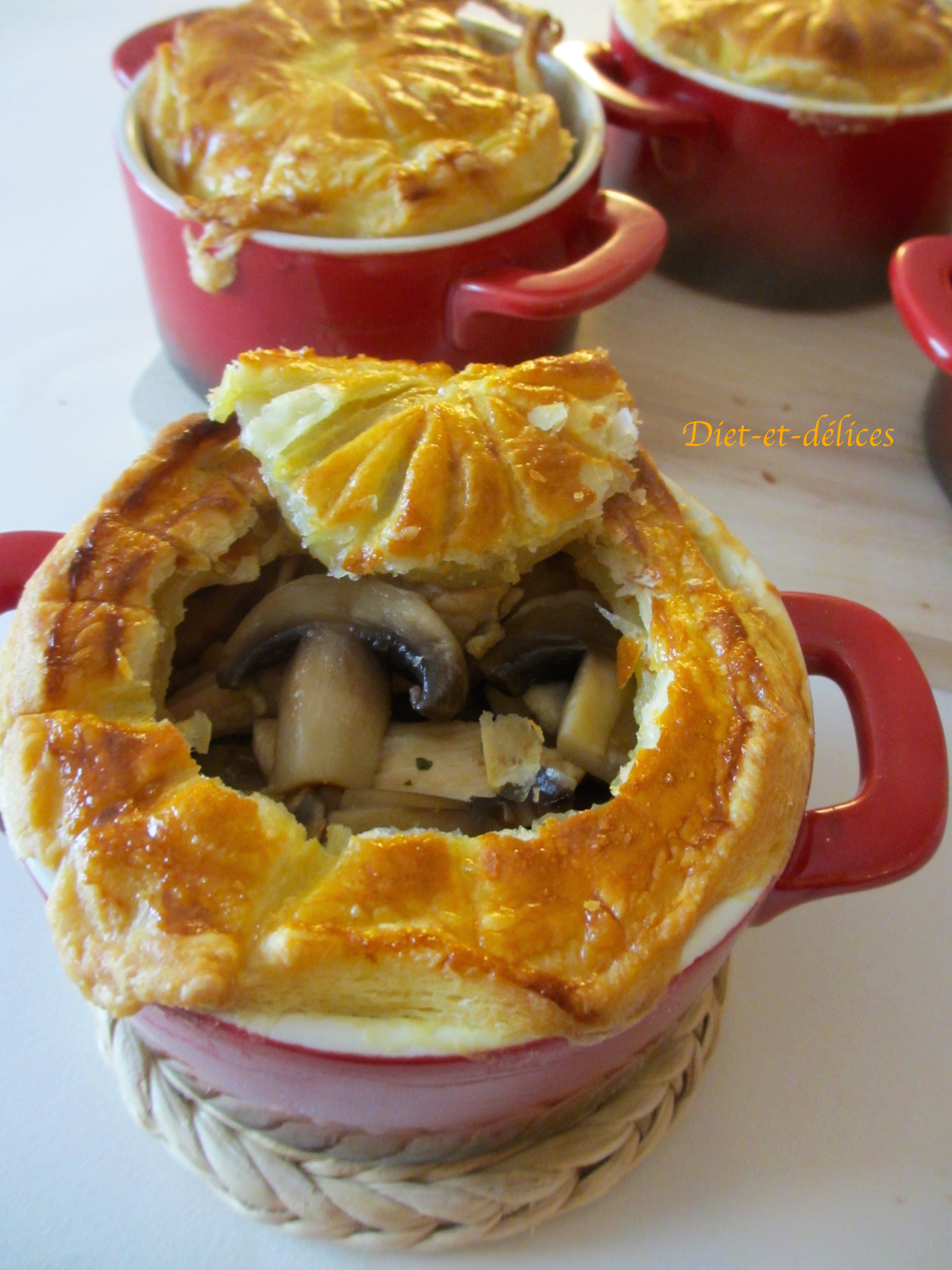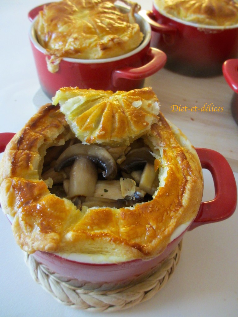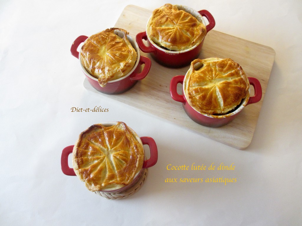 cocotte, cocotte lutée, pâte feuilletée, dinde, champignons, sauce soja, gingembre, coriandre, plat complet, four