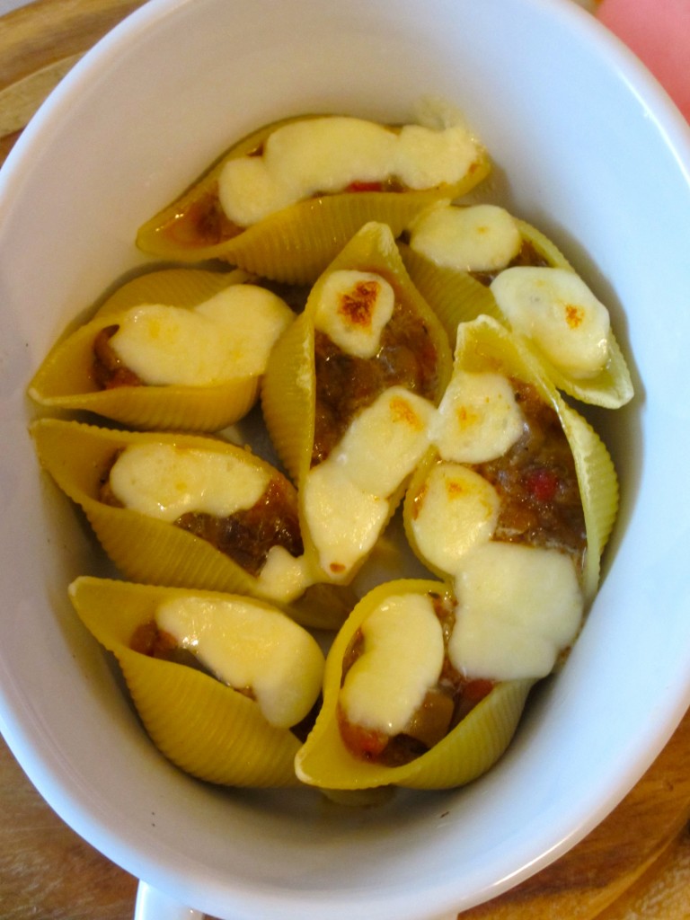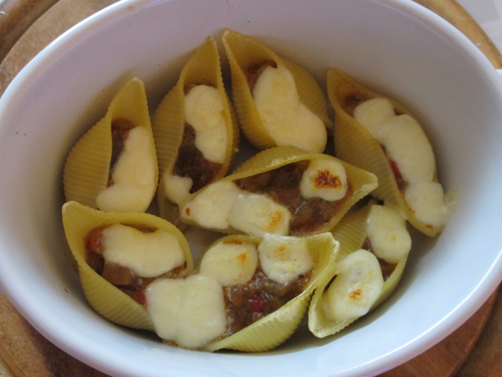 conchiglioni, pâtes, pâtes farcies, caponata, mozzarella, légumes