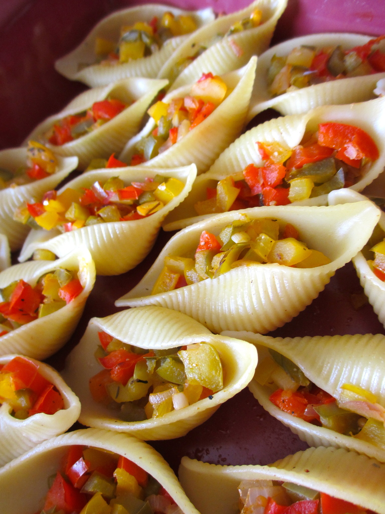 conchiglioni, légumes, légumes du soleil, plat provençal, diététique, pâtes poivron, oignon,cajun, huile d’olive