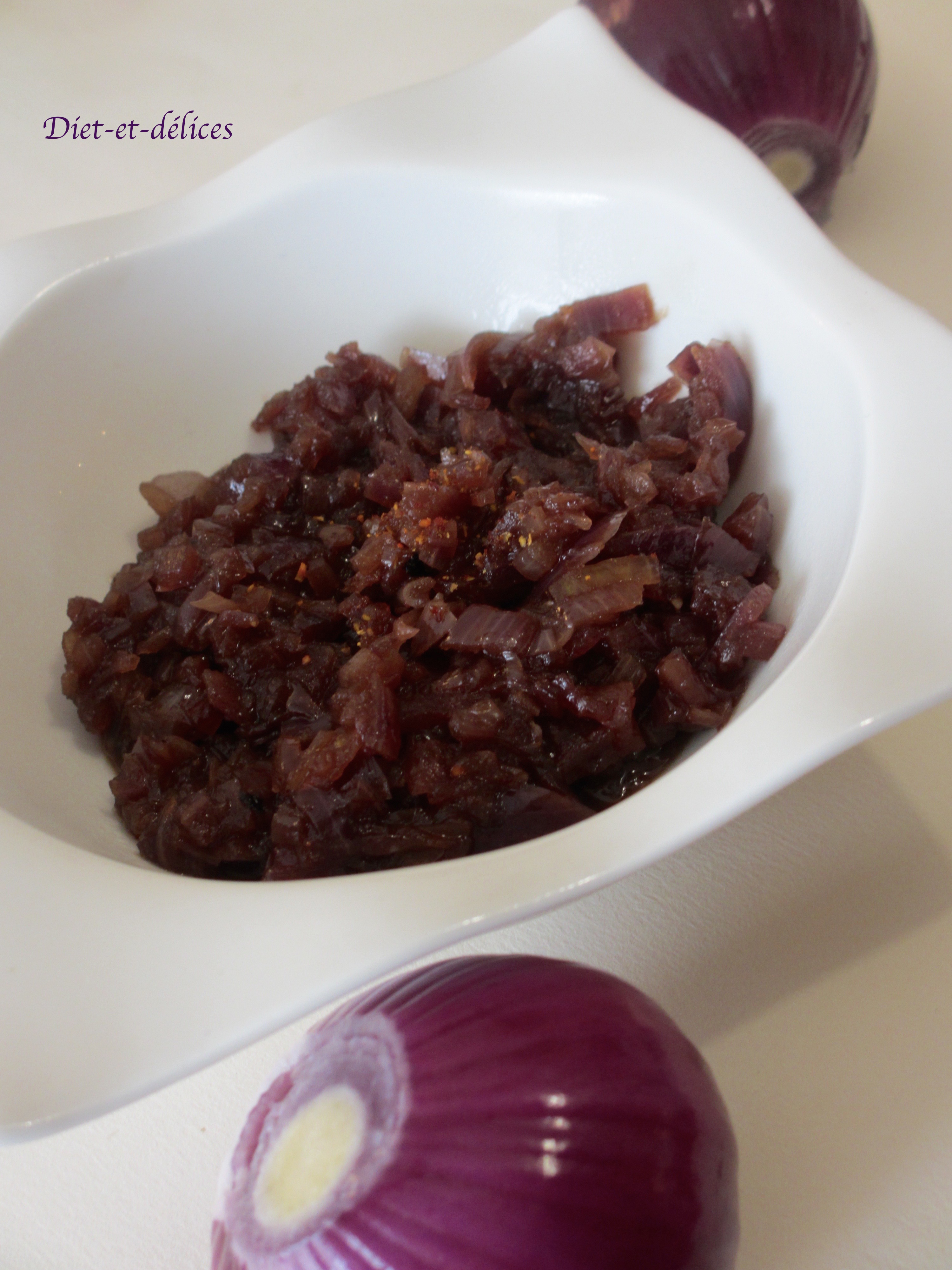 confit, oignon, oignon rouge, confit d’oignons, vianaigre balsamique, accompagnement, miel, piment d’espelette