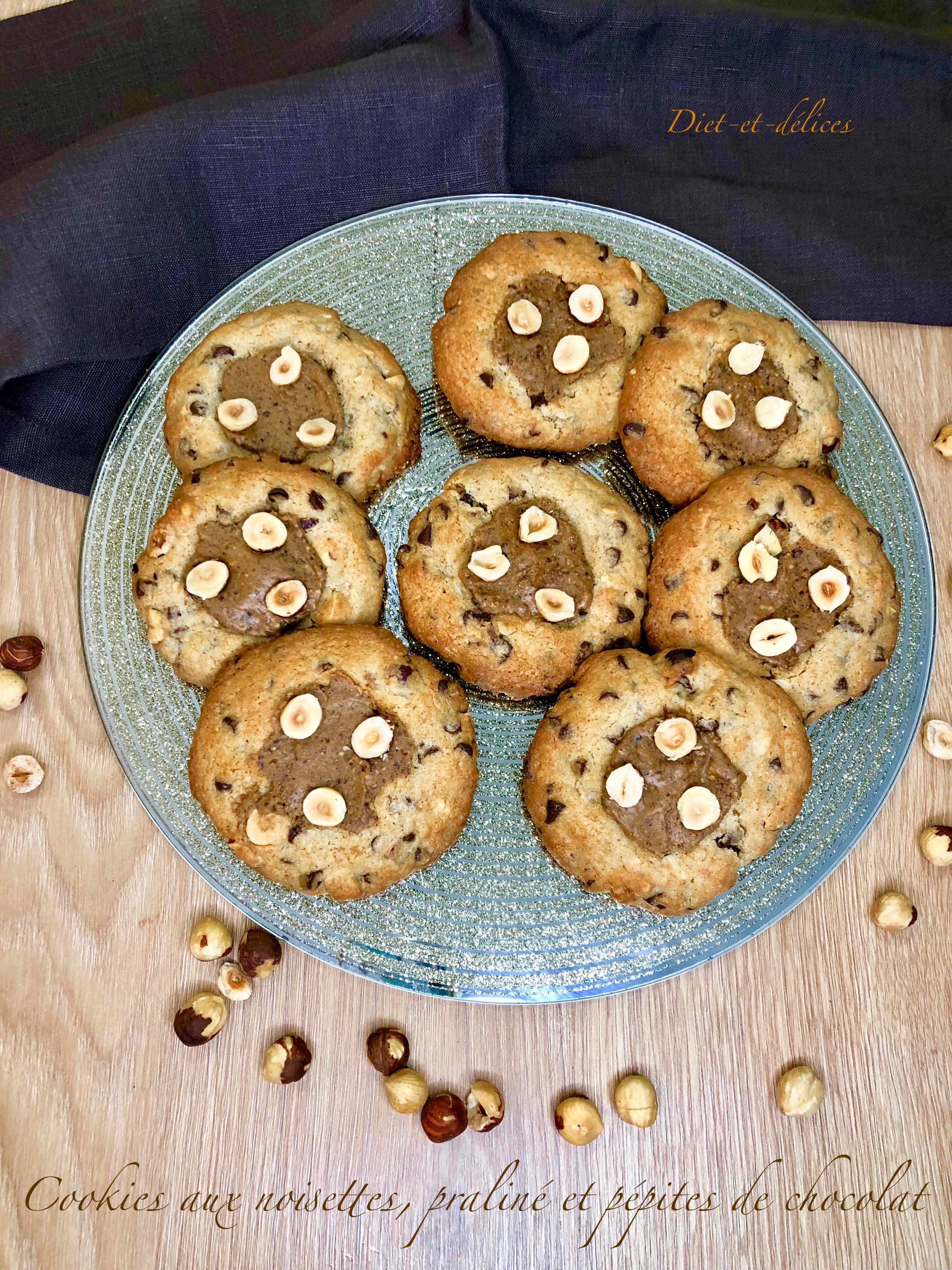 cookies, biscuits, pépites de chocolat, cookie au praliné, noisettes, praliné