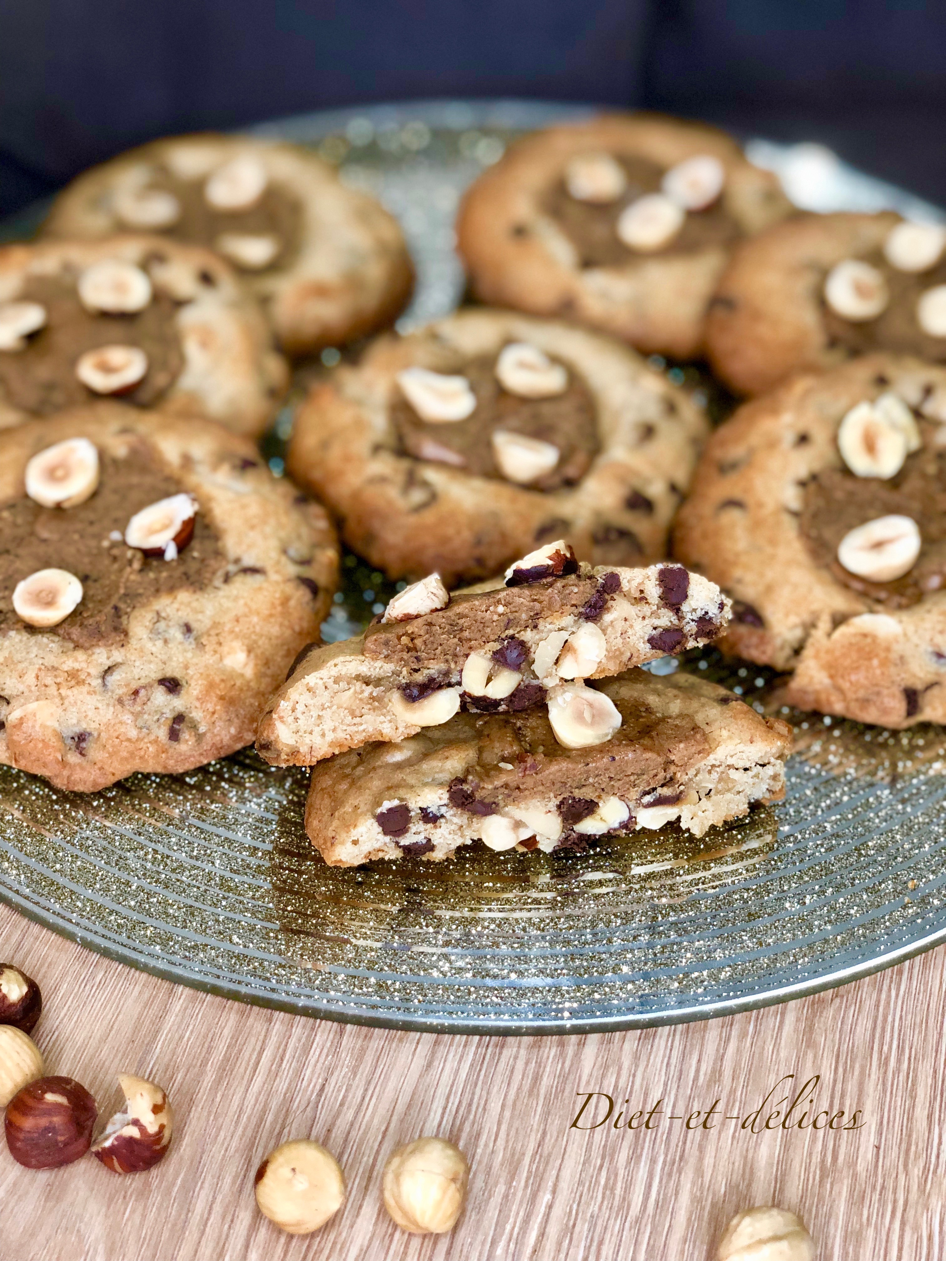 cookies, biscuits, pépites de chocolat, noisettes, cookies au praliné, praliné