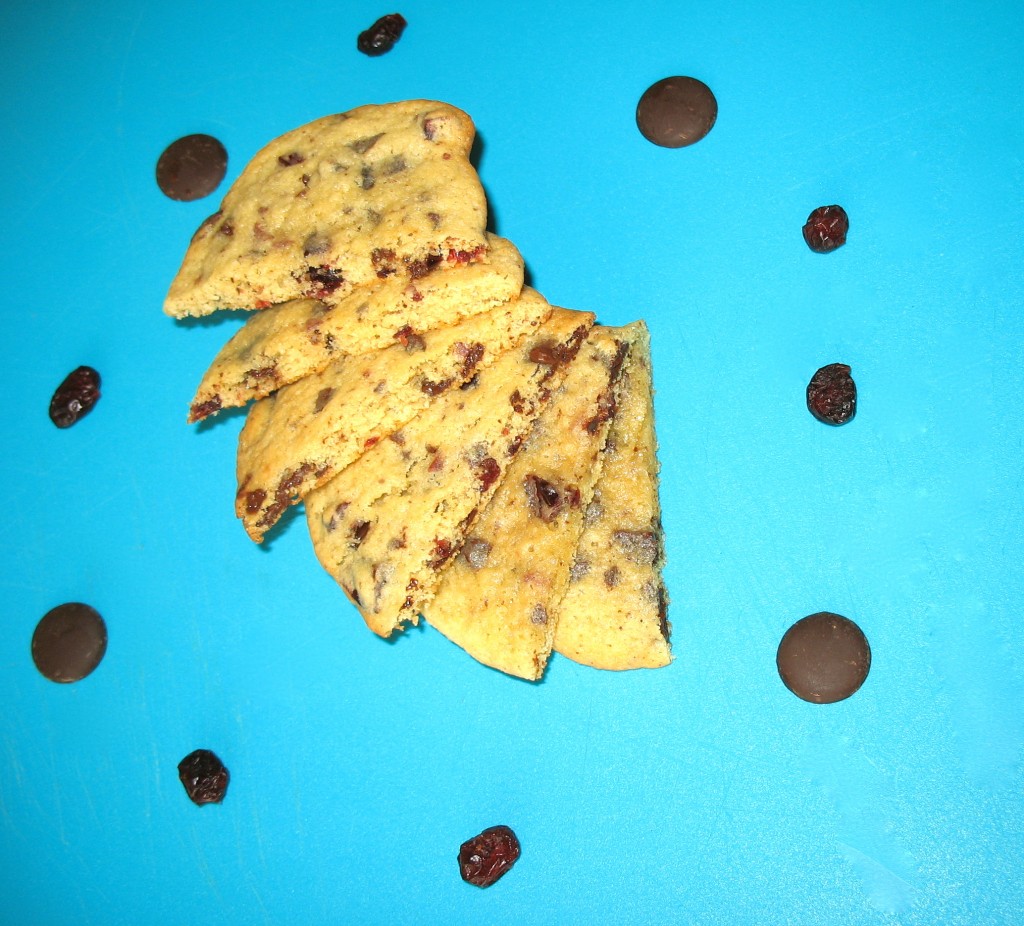 A l’aide d’un fouet, mélanger énergétiquement le beurre pommade et le sucre cassonade. Ajouter l’œuf entier. Incorporer la farine et la levure préalablement tamisées, puis les éclats de chocolat et de canneberges.
