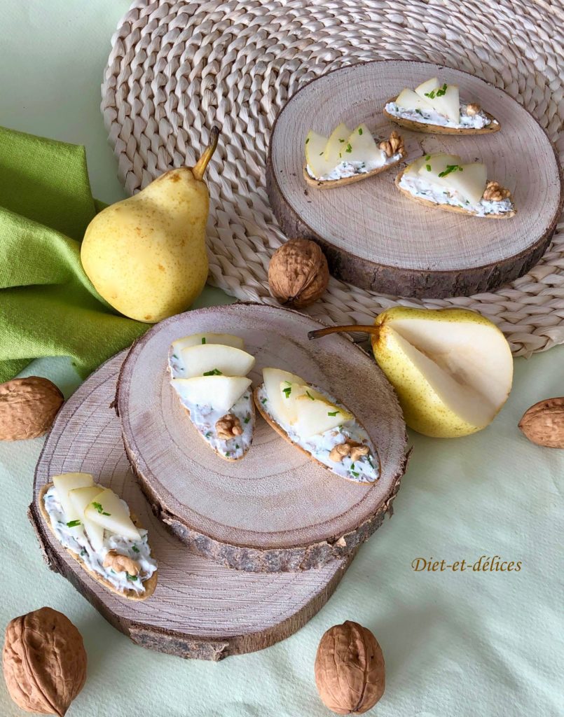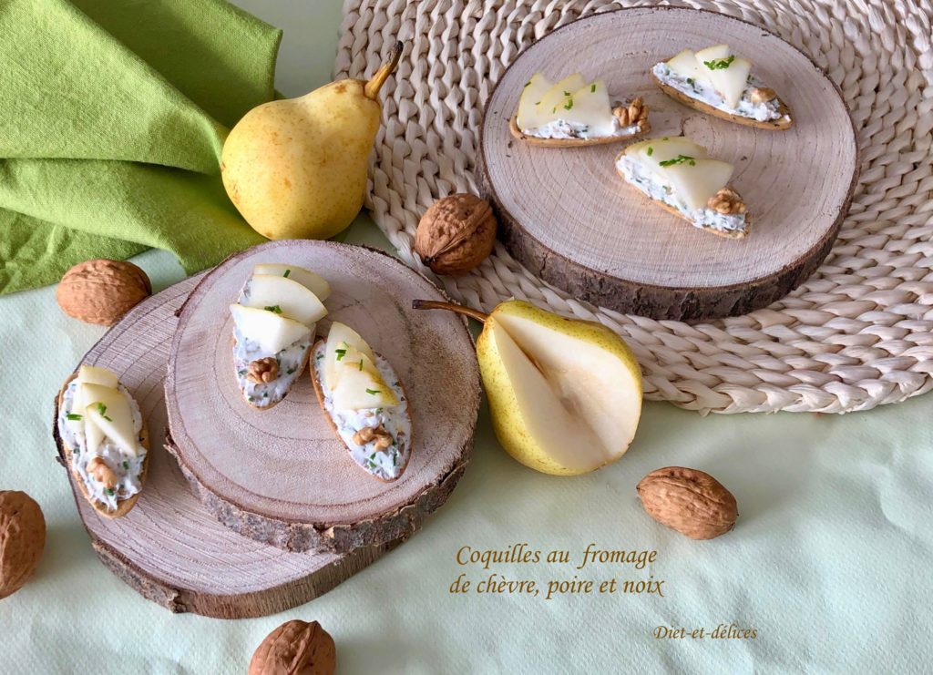 apéritif, apéro, coquilles, fromage de chèvre, noix, poire, apéro, apéritif, coquille, fromage de chèvre, noix, poire