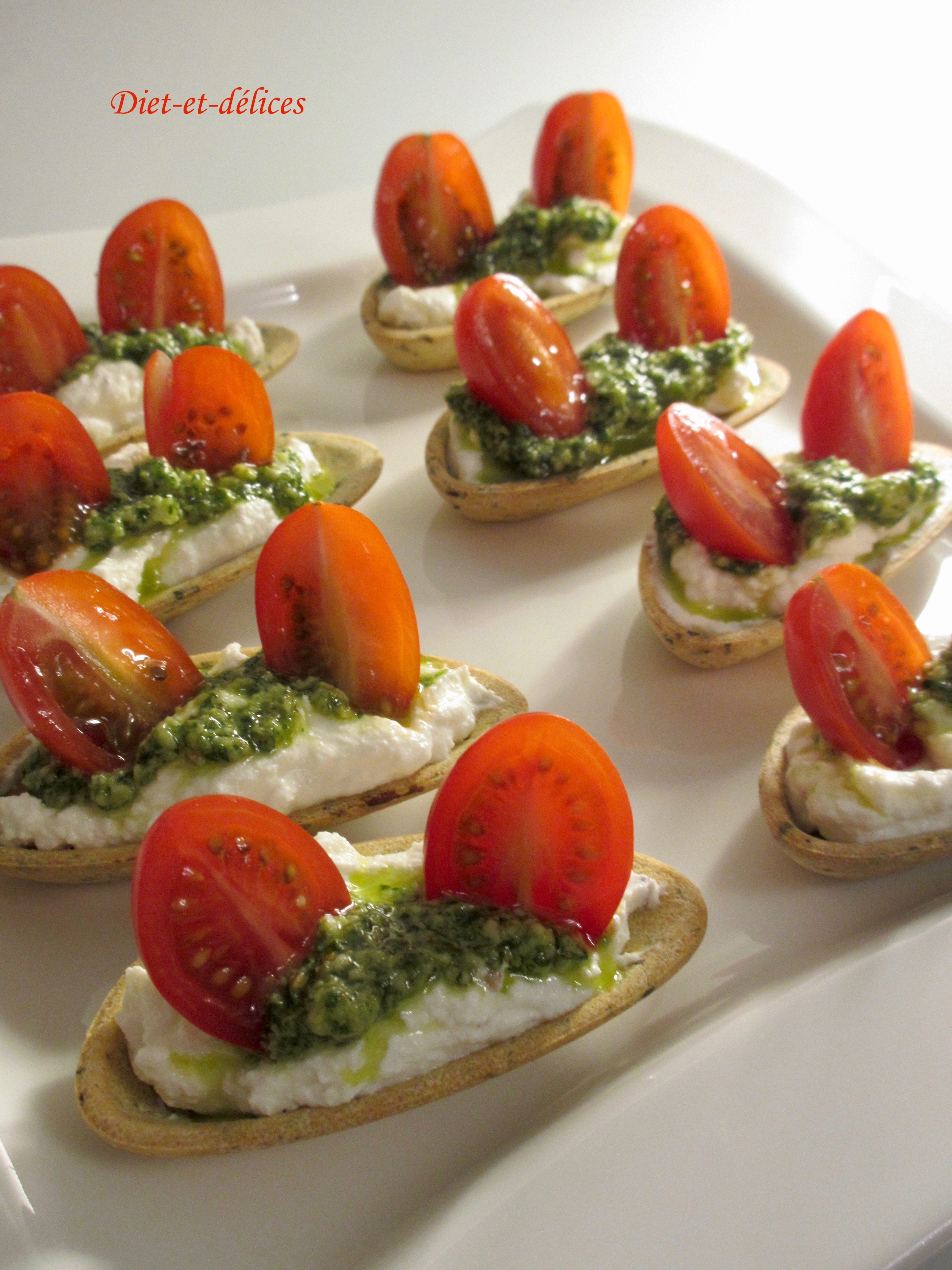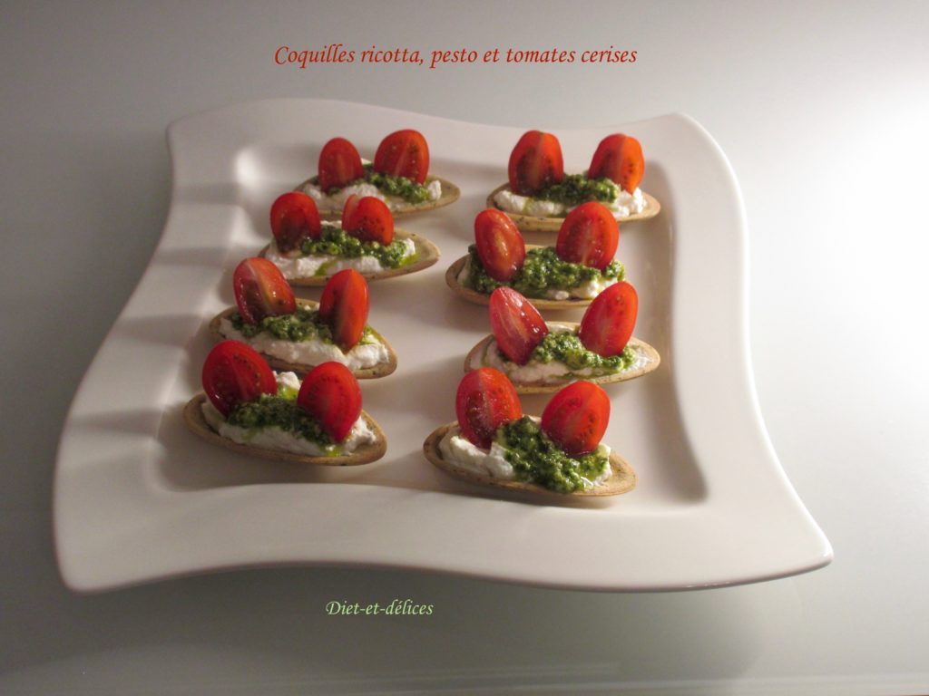 coquilles, apéro, apéritifricotta, pesto, tomates cerises