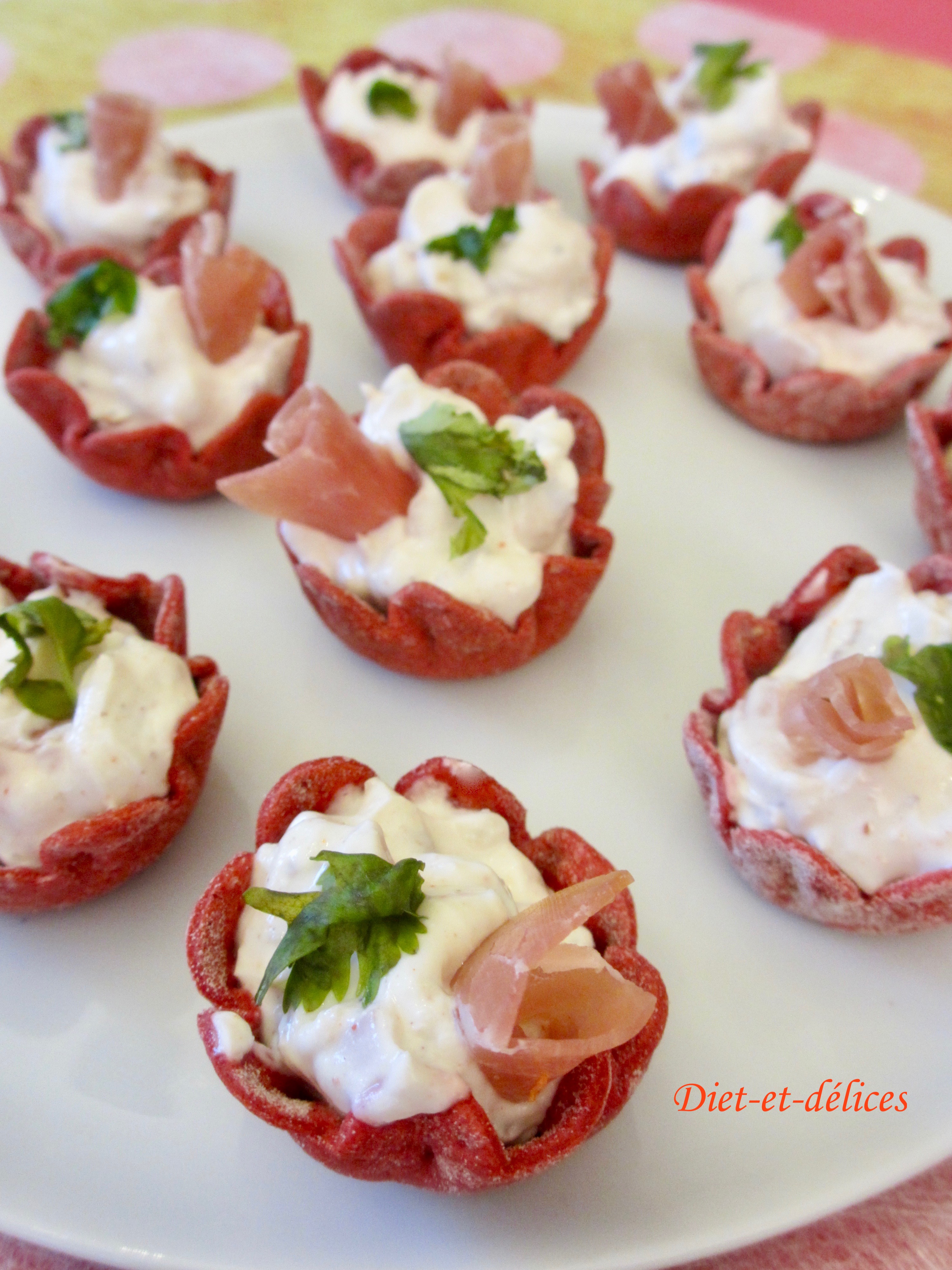 apéro, apéritif, corolles, fromage blanc, jambon fumé, jambon cru, noisettes, coriandre, paprika fumé