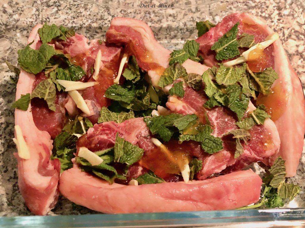 agneau, côtelettes d’agneau, agneau mariné, menthe, coriandre, marinade