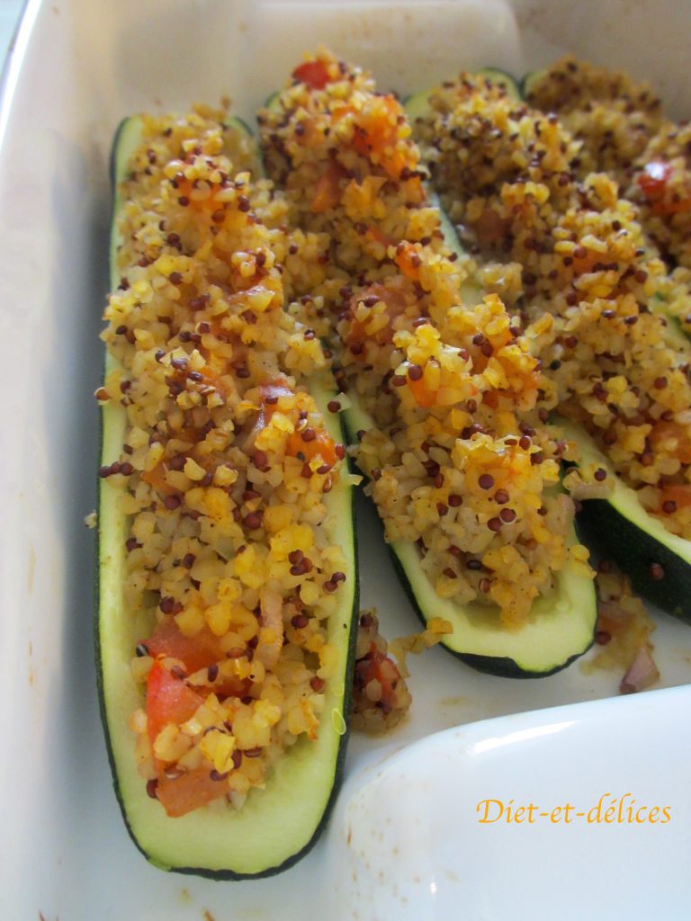 courgettes, quinoa, boulgour , courgettes farcies, tomate, céréales, courgettes farcies aux céréales, diététique