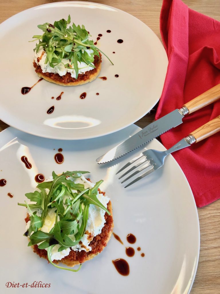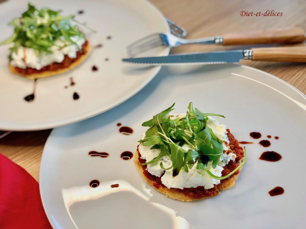 entrée, entrée froide, chèvre fraisbiscuit salé, thym, tomate séchée
