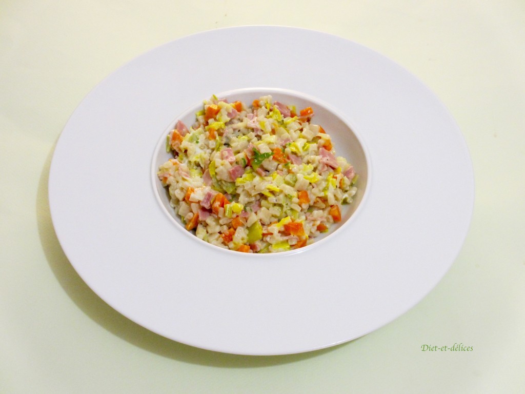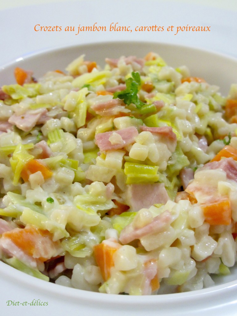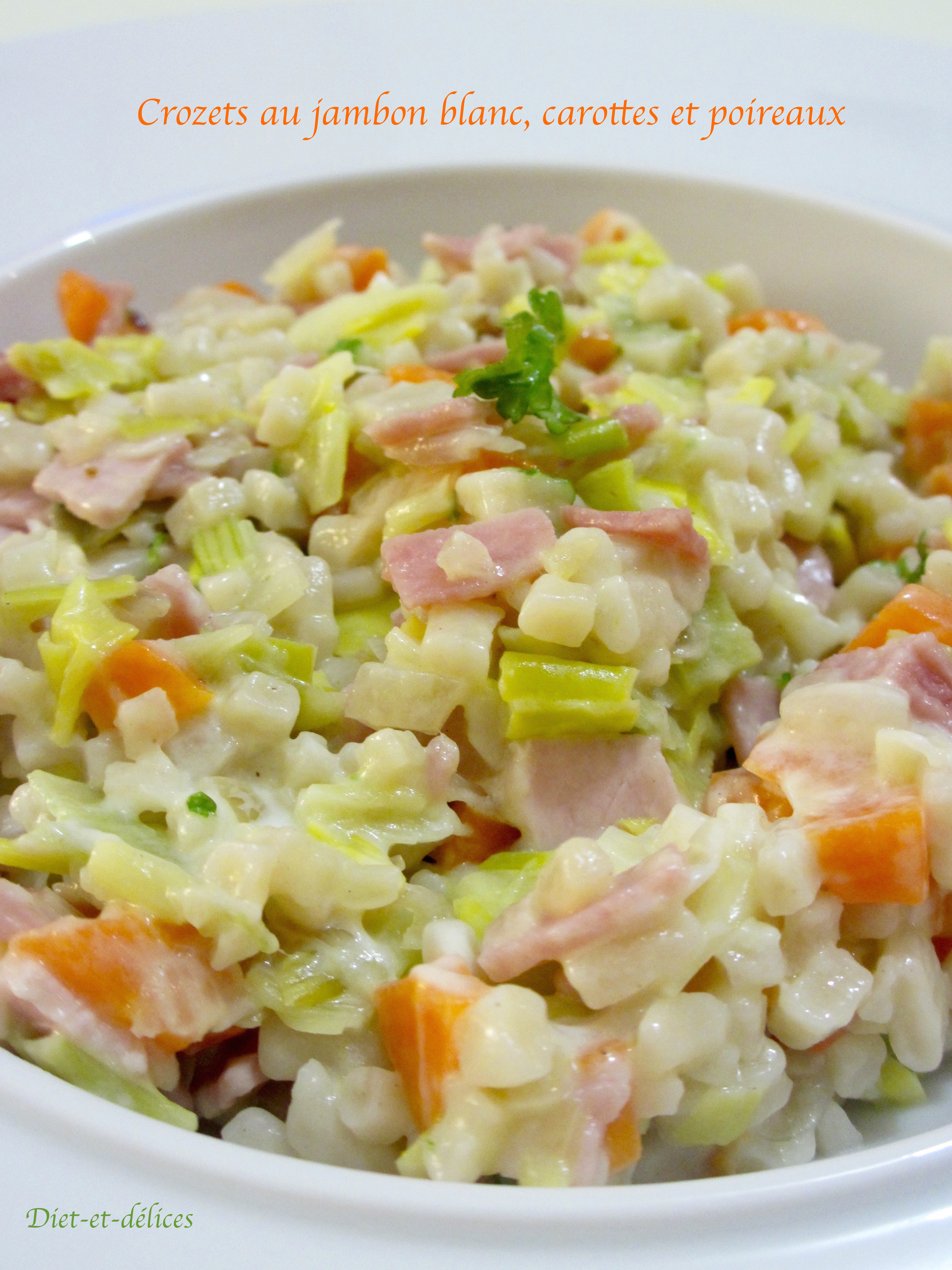 crozet, jambon, carottes, crozet au jambon, jambon blanc, poireaux, crozet au jambon et légumes, pâtes, plat complet