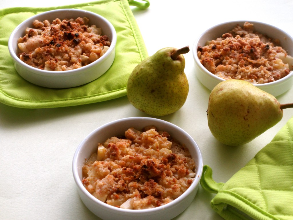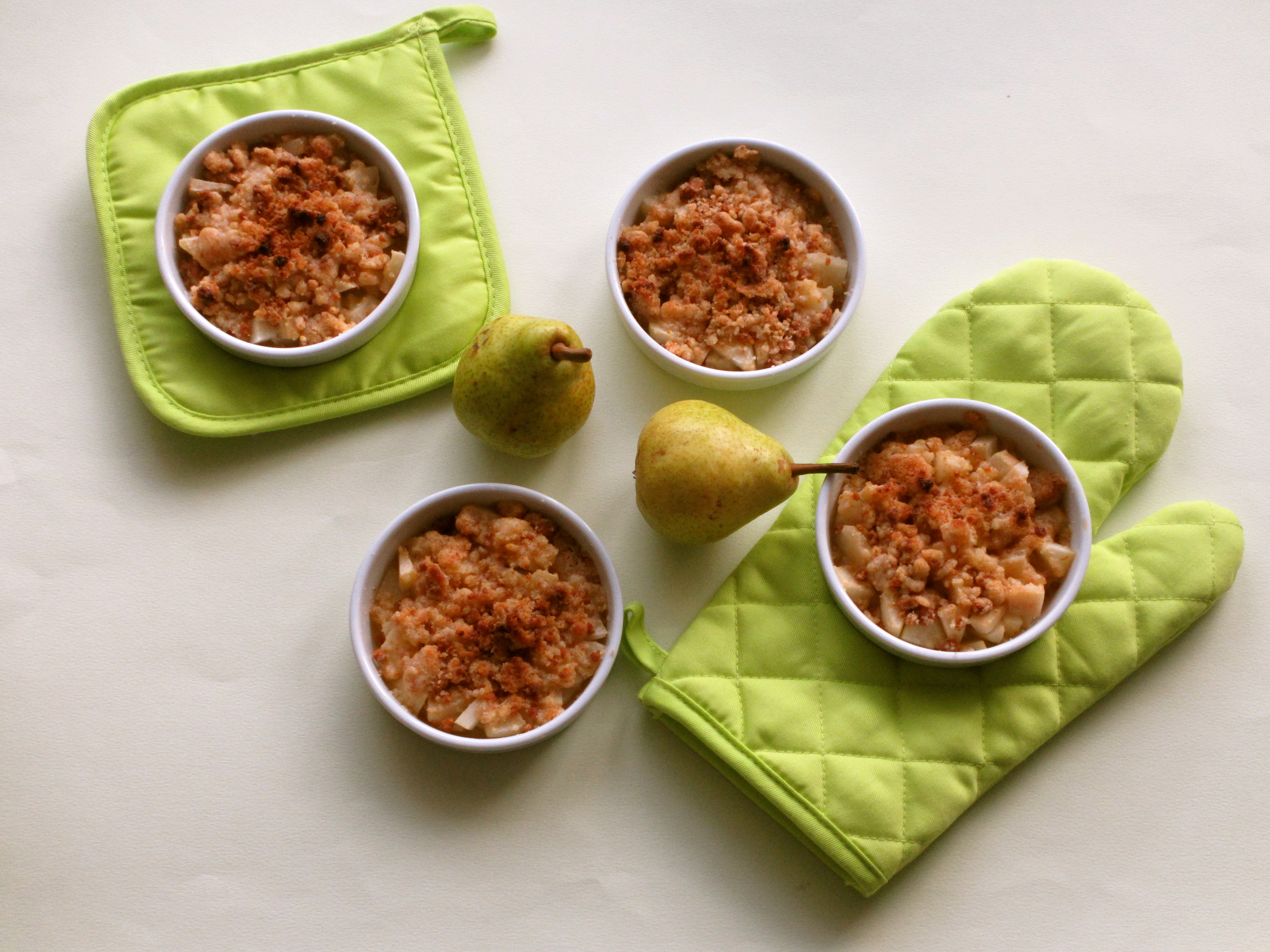 crumble, crumble aux poires, crumble de fruits, crumble aux spéculoos, crumble aux poires et spéculoos,spéculoos, sirop d’érable, poires au four, poires au sirop d’érable, poires, poires cuites,dessert fruité, dessert, dessert aux poires, végétarien