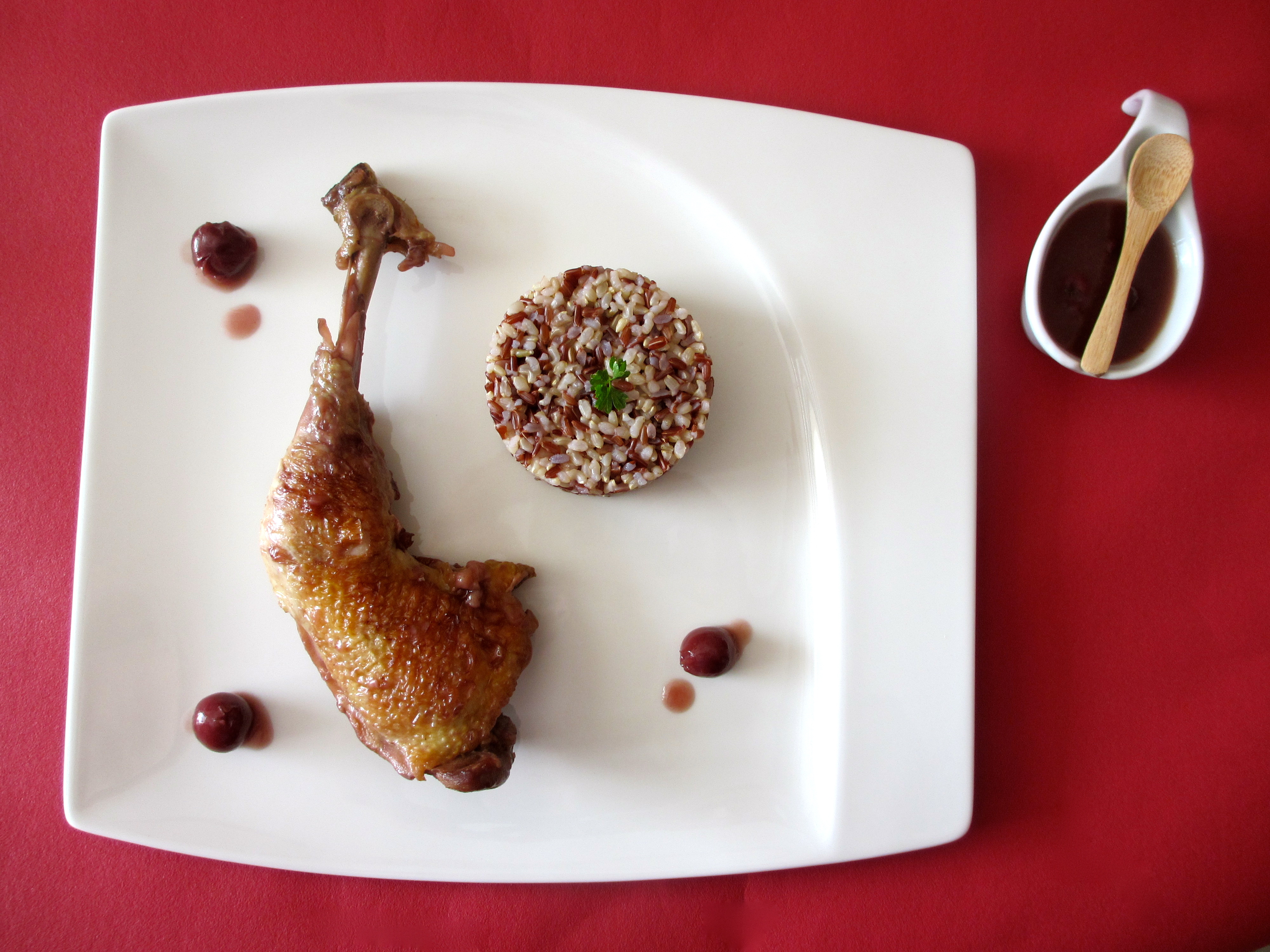 Bière et cerise… Voici qui est original et doit bien sublimer ces cuisses de poulet… J’y goûterais volontiers !