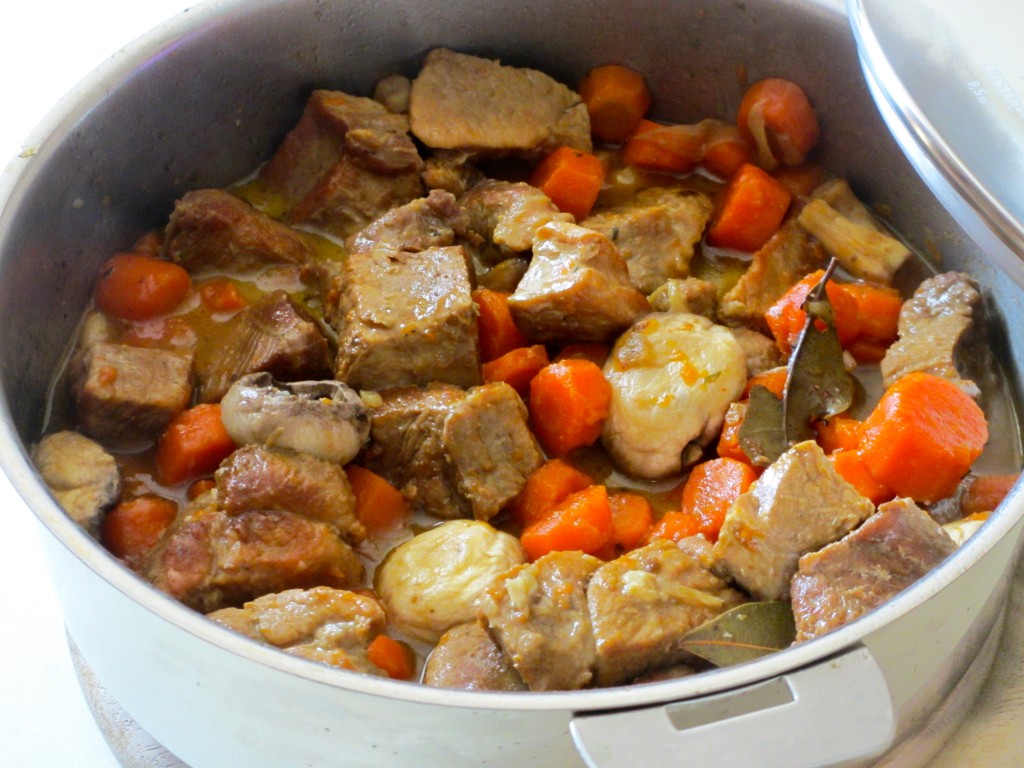 porc, épaule de porc,porc au cidre, porc mijoté, épaule de porc au cidre, porc mijoté au cidre, cidre brut, plat mijoté,cidre, cuisine familiale,carottes, champignons de Paris, cuisine traditionnelle,plat complet, mijoté