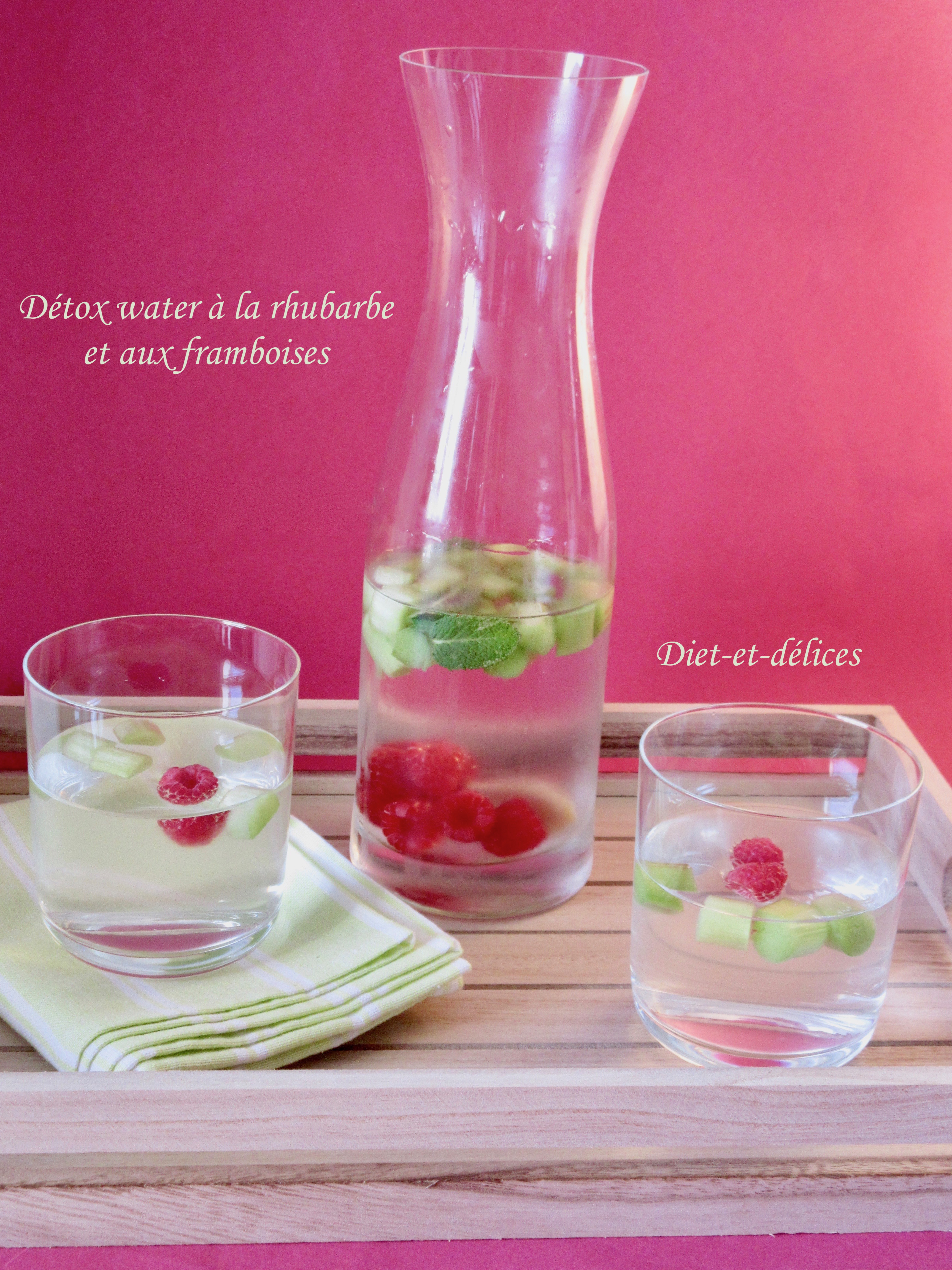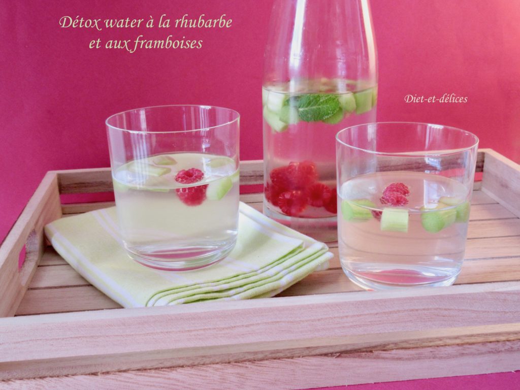détox water, boisson, eau aromatisée, framboises, rhubarbe, menthe, gingembre