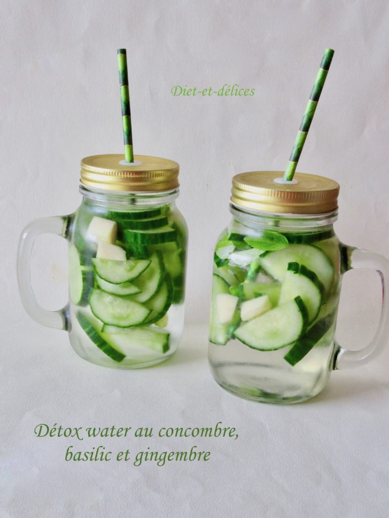 détox water, eau aromatisée, boisson, concombre, basilic, gingembre