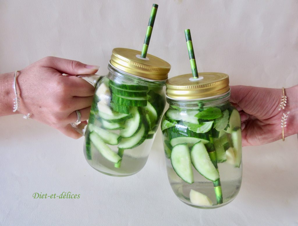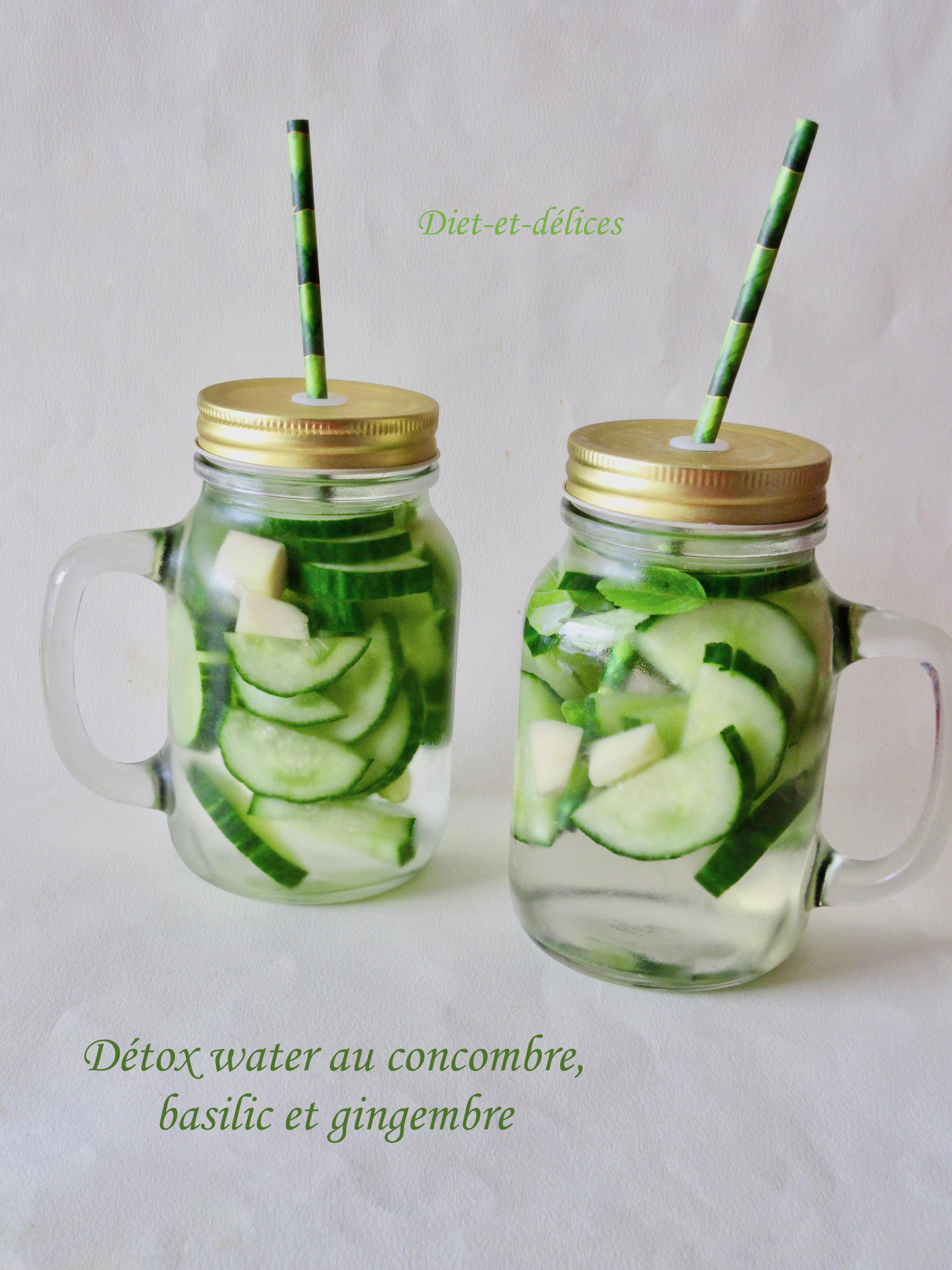 détox water, boisson, eau aromatisée, concombre, basilic, gingembre