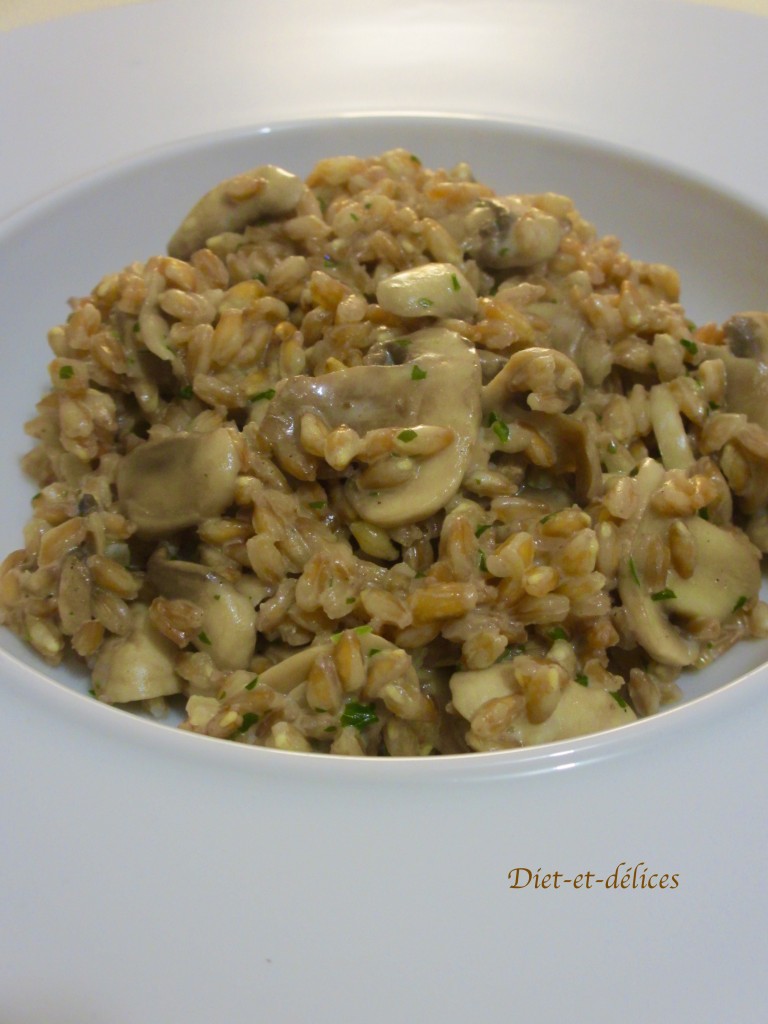épeautre, risotto, champignons, épeautre farro, persil, champignons de paris, épeautre farro façon risotto, ail, végétarien