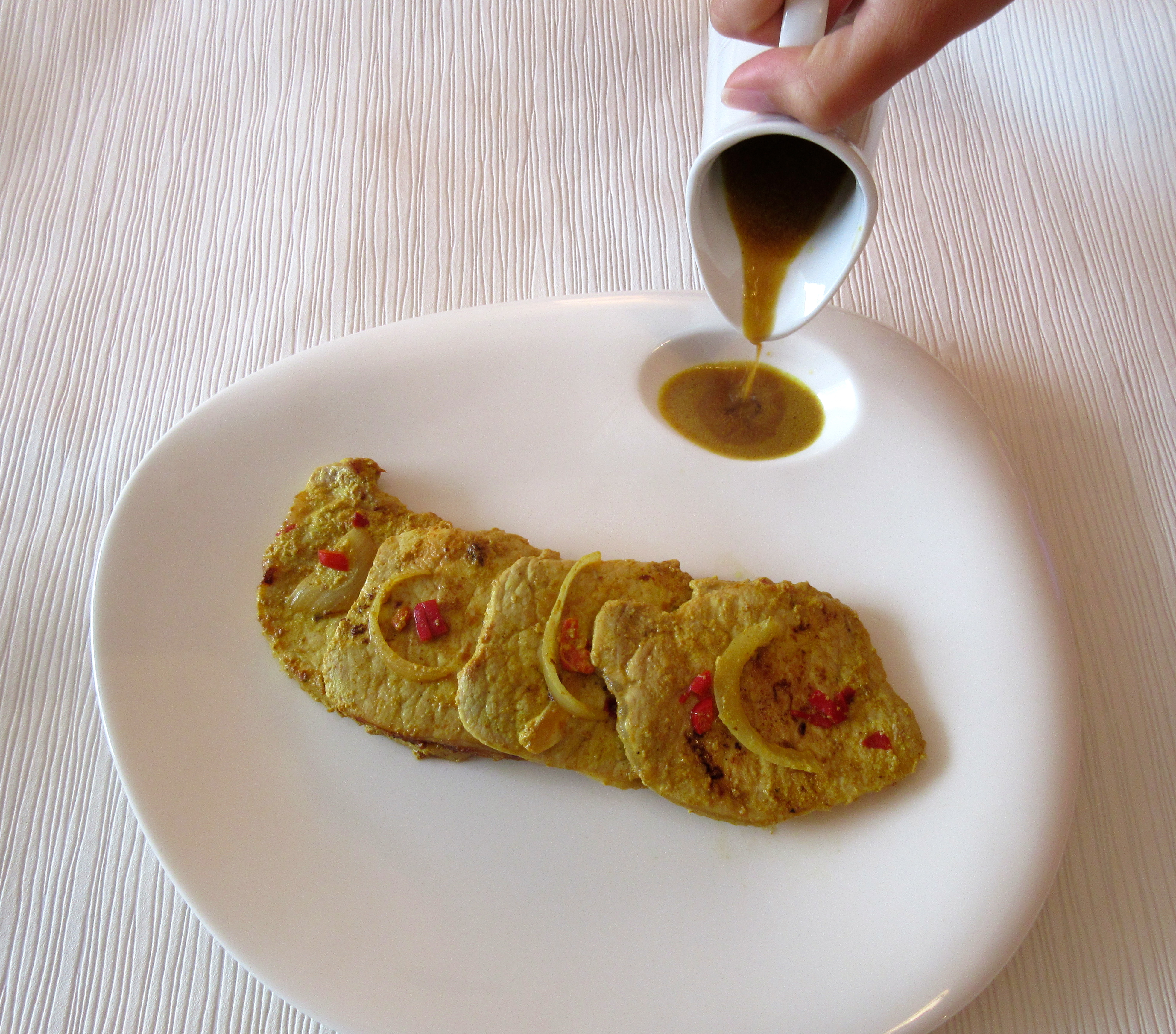 escalopes , escalopes de porc, porc, marinade , marinade viande de porc, lait de coco, piment , curry, curry lait de coco