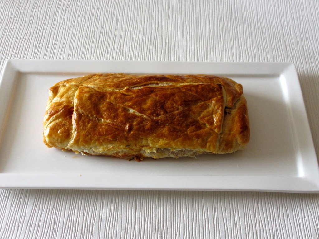 - Déposer le filet mignon en croûte sur une plaque de cuisson recouverte d’un papier cuisson.
